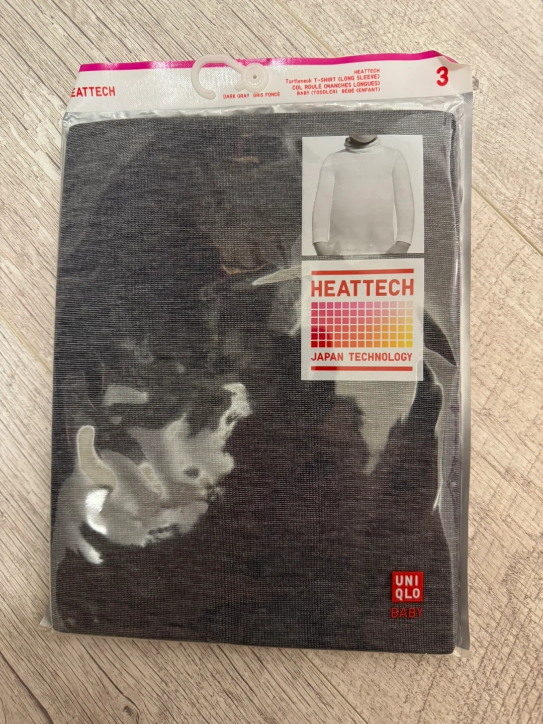 Brand new in packaging, a UNIQLO Baby HEATTECH turtleneck in dark gray! Perfect for keeping your little one warm with Japan Technology. Size 3.