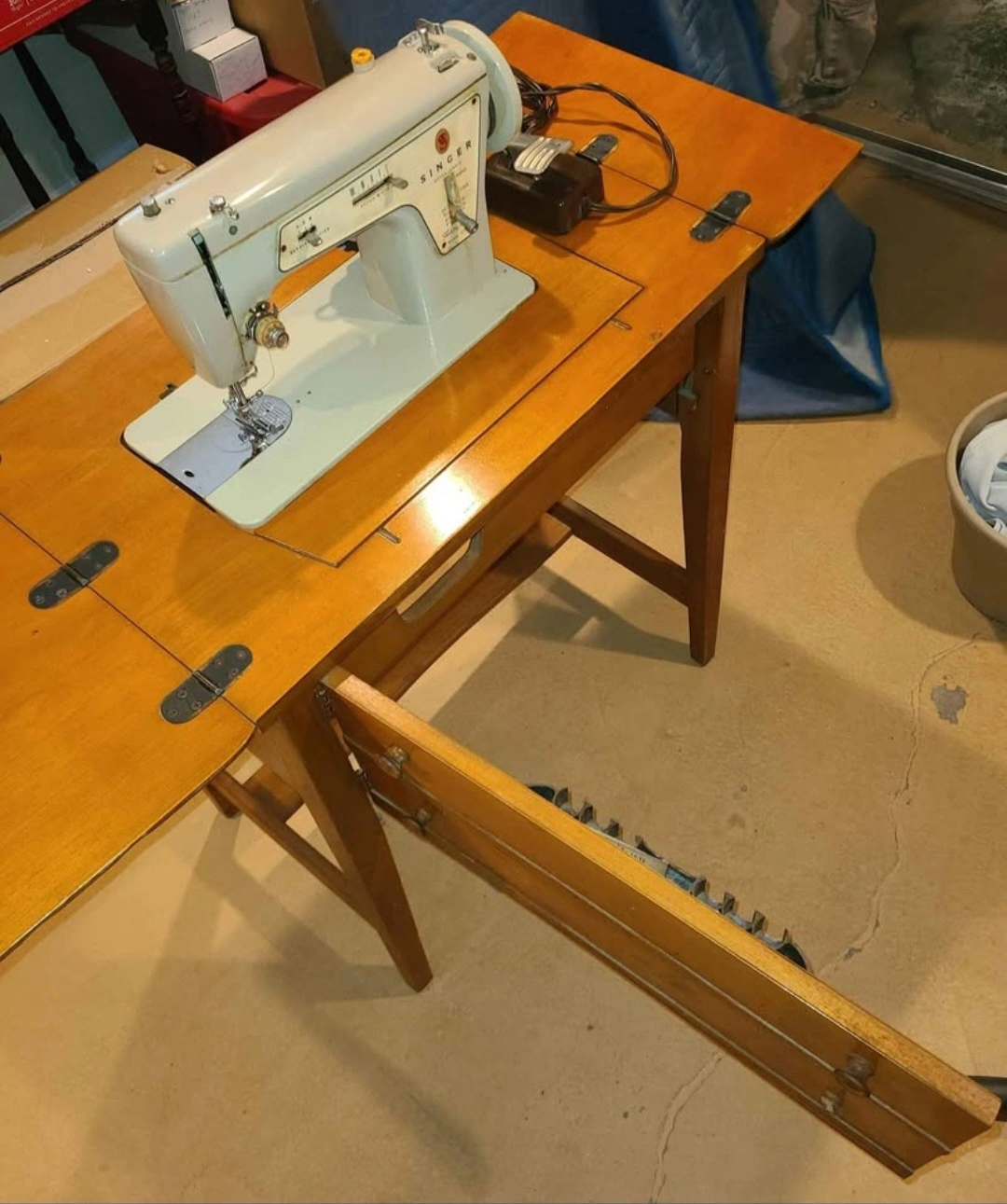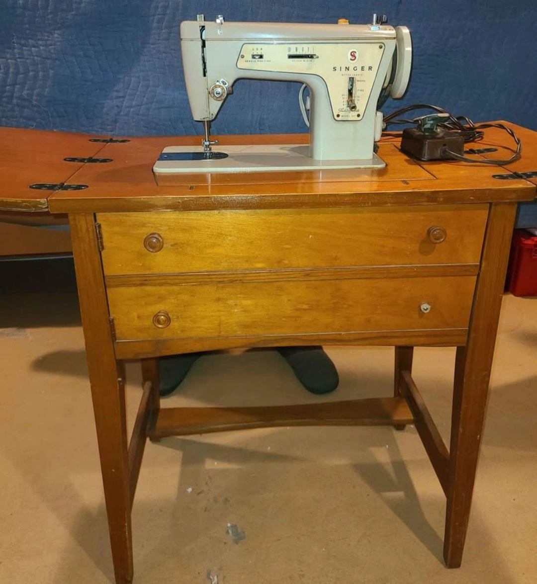 Vintage Singer Sewing Machine with Cabinet