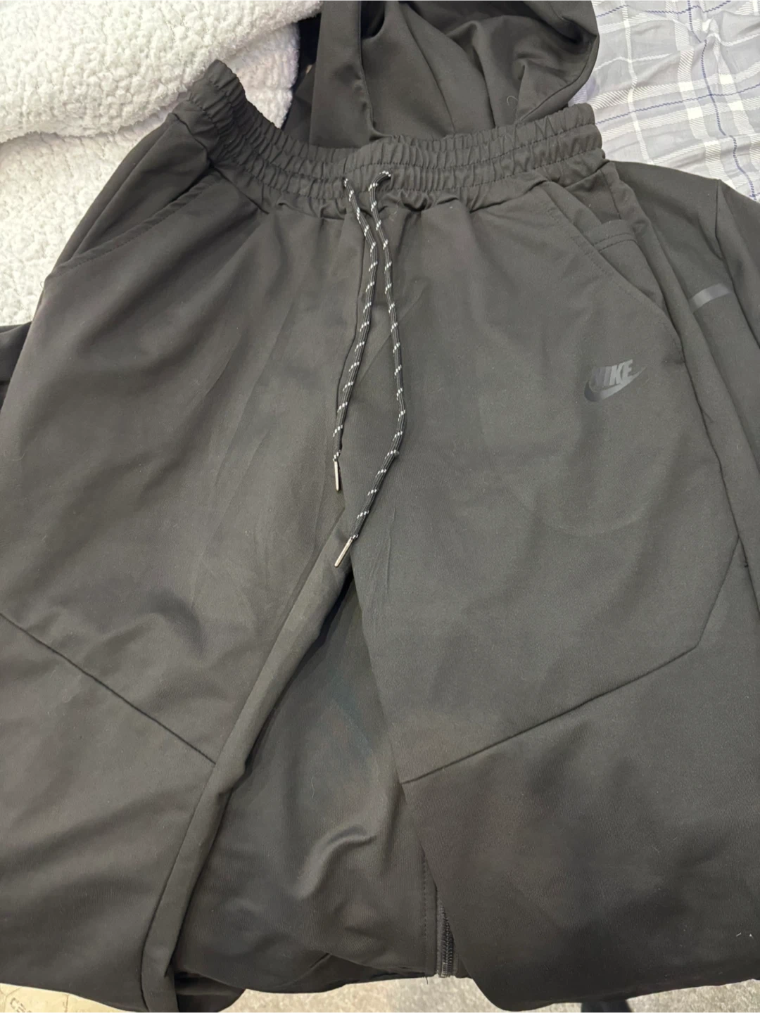 Selling a Nike tracksuit in black, size medium. It includes both the jacket and pants. Great for workouts or just lounging around.