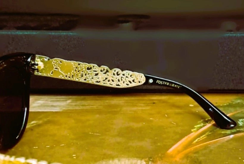 Features: Lightweight for all-day comfort, impact-resistant lenses, and intricate laser-cut gold metalwork.