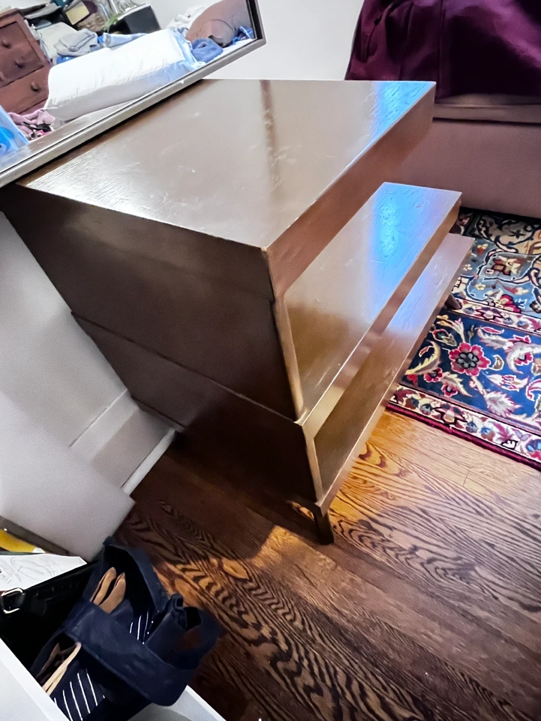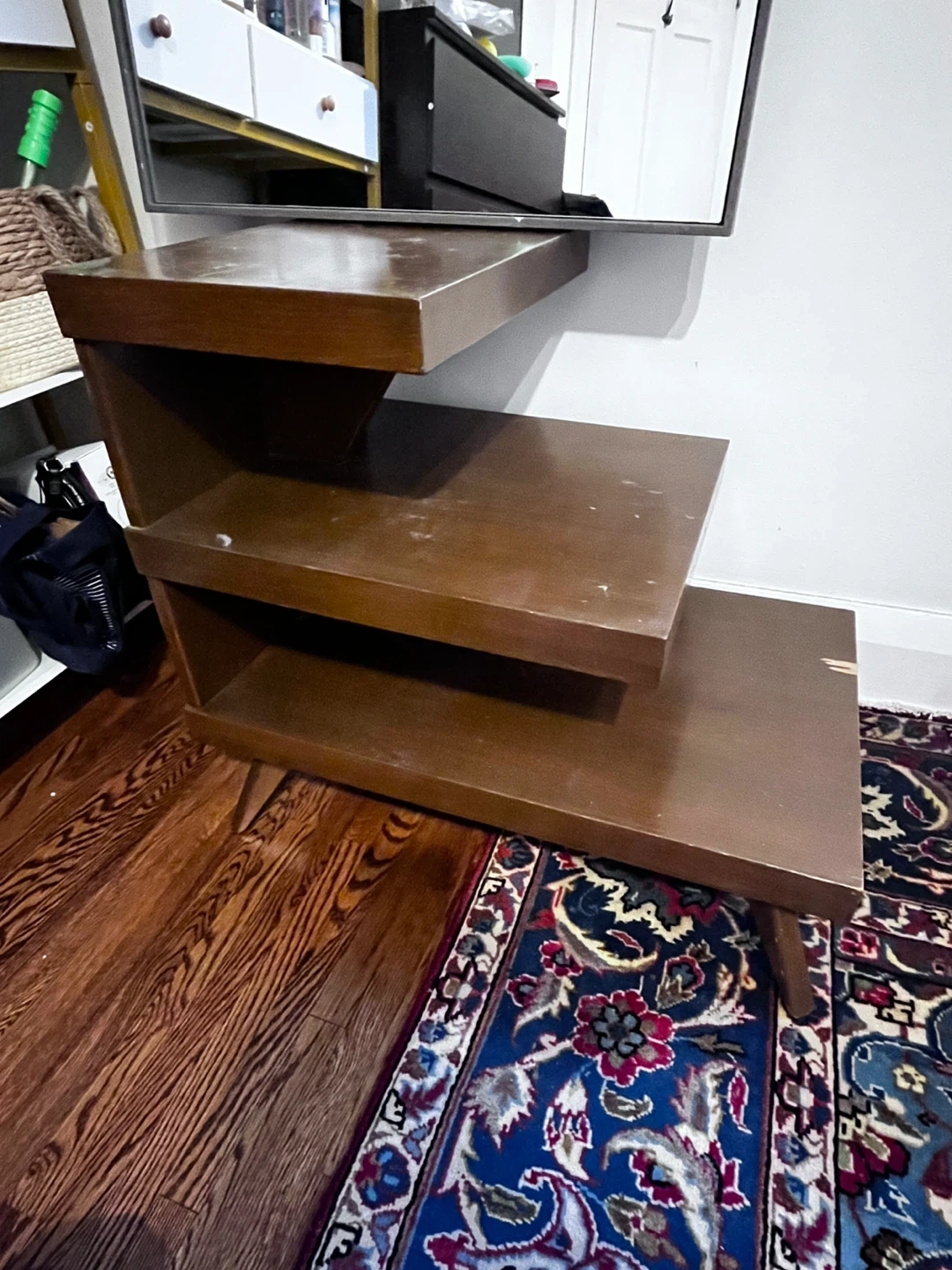 I am moving out by 28th December need to sell this unique brown wooden bedside table. It’s in good condition and has a tiny spot of discoloured. Perfect for adding a touch of vintage charm to any room.