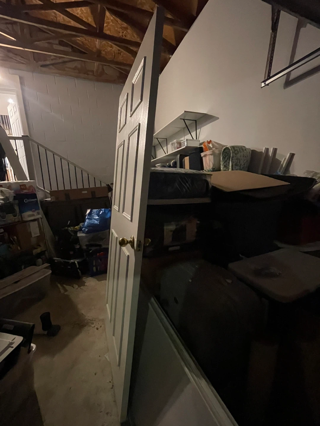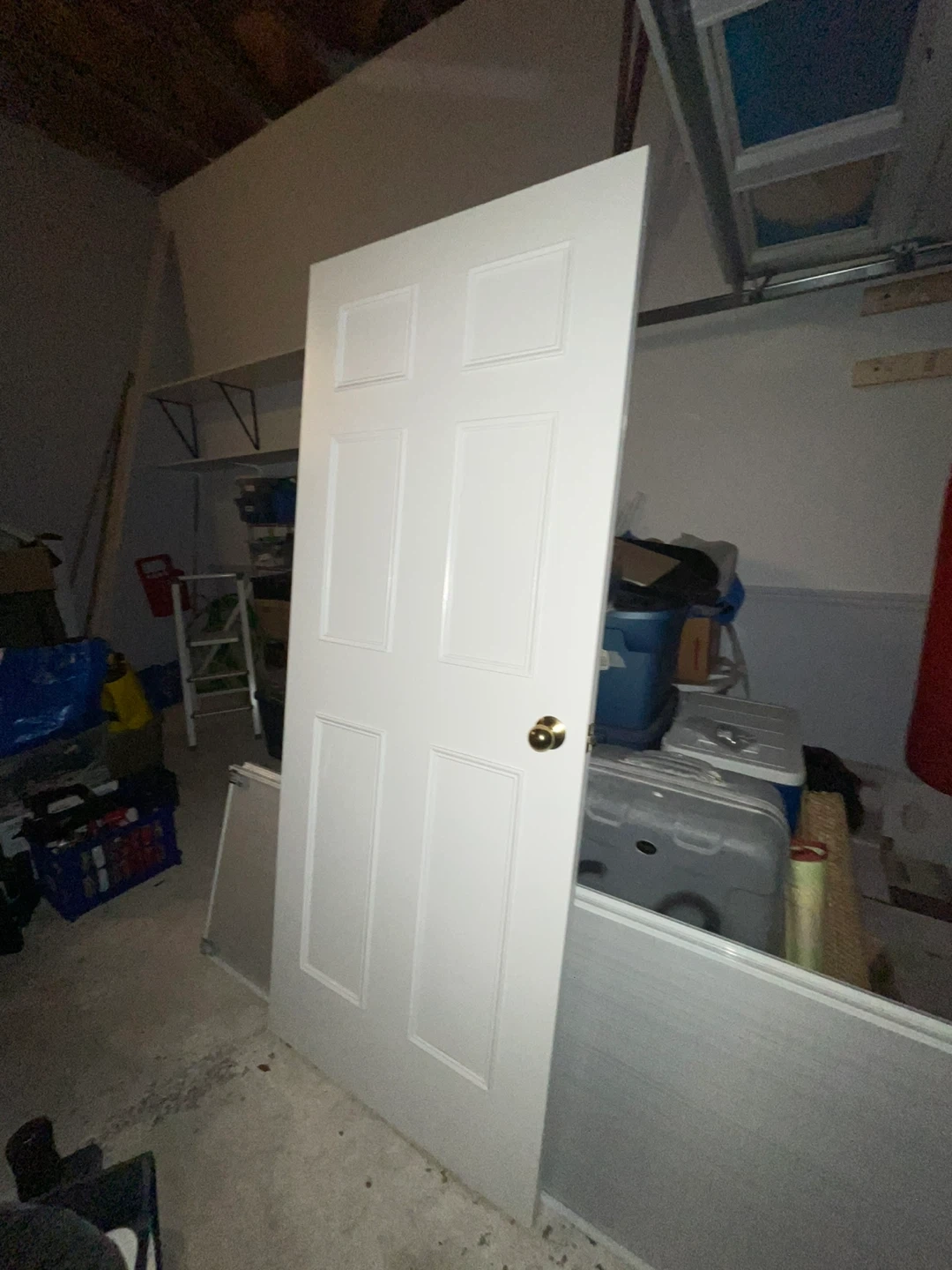 White interior door with six raised panels. Comes with a gold-coloured doorknob. Ready for installation in your home!