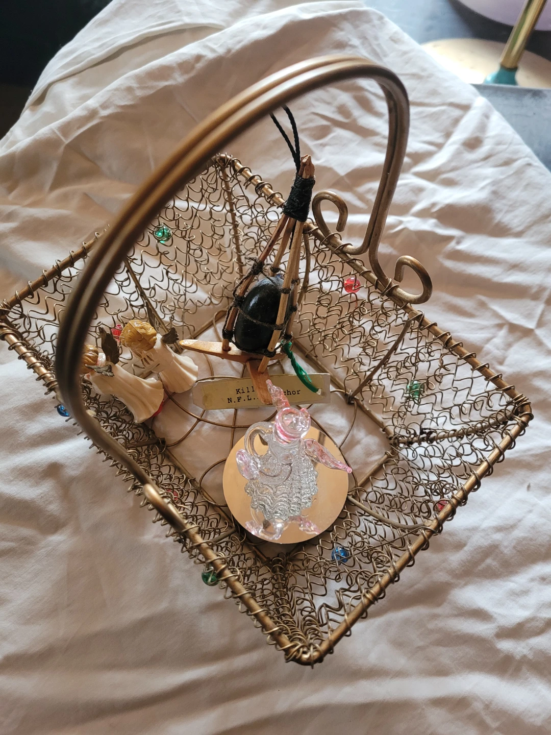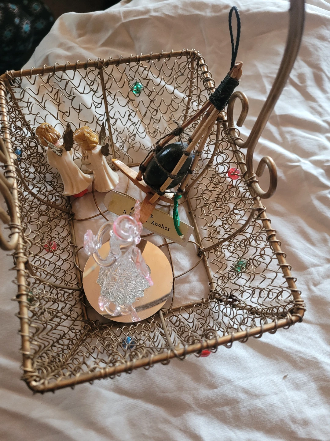 Assorted Decorative Angels and Nautical Item in a Sparkly Basket
