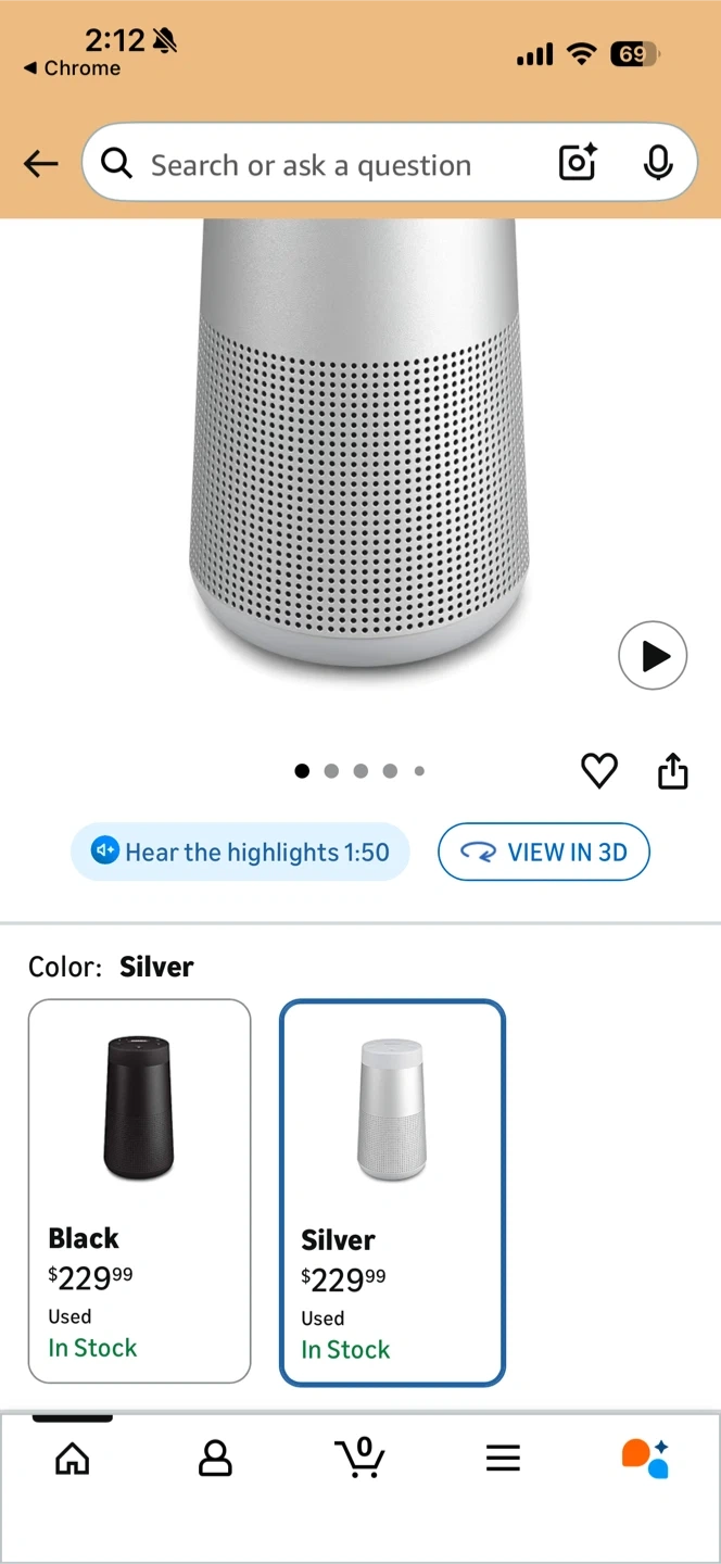 Bose SoundLink Revolve II Bluetooth speaker in silver. It's in almost perfect condition, has just one scratch that is barely visible and doesn’t affect the sound at all. Great sound quality and is perfect for on-the-go listening. The used one from amazon is $230. Willing to cut the price for the fast buyers!