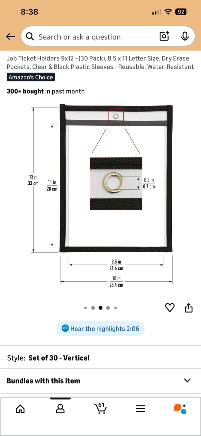 (Look at all pictures, Click on the picture you can see it in detail, The sizes are shown at the back.)This is a 30 pack of reusable, eco-friendly, and durable job shop ticket holders. They're perfect for organizing and protecting your documents. (Cash only) (You must come pick up your items. If you come to the apartment, I will take the goods to the lobby)
