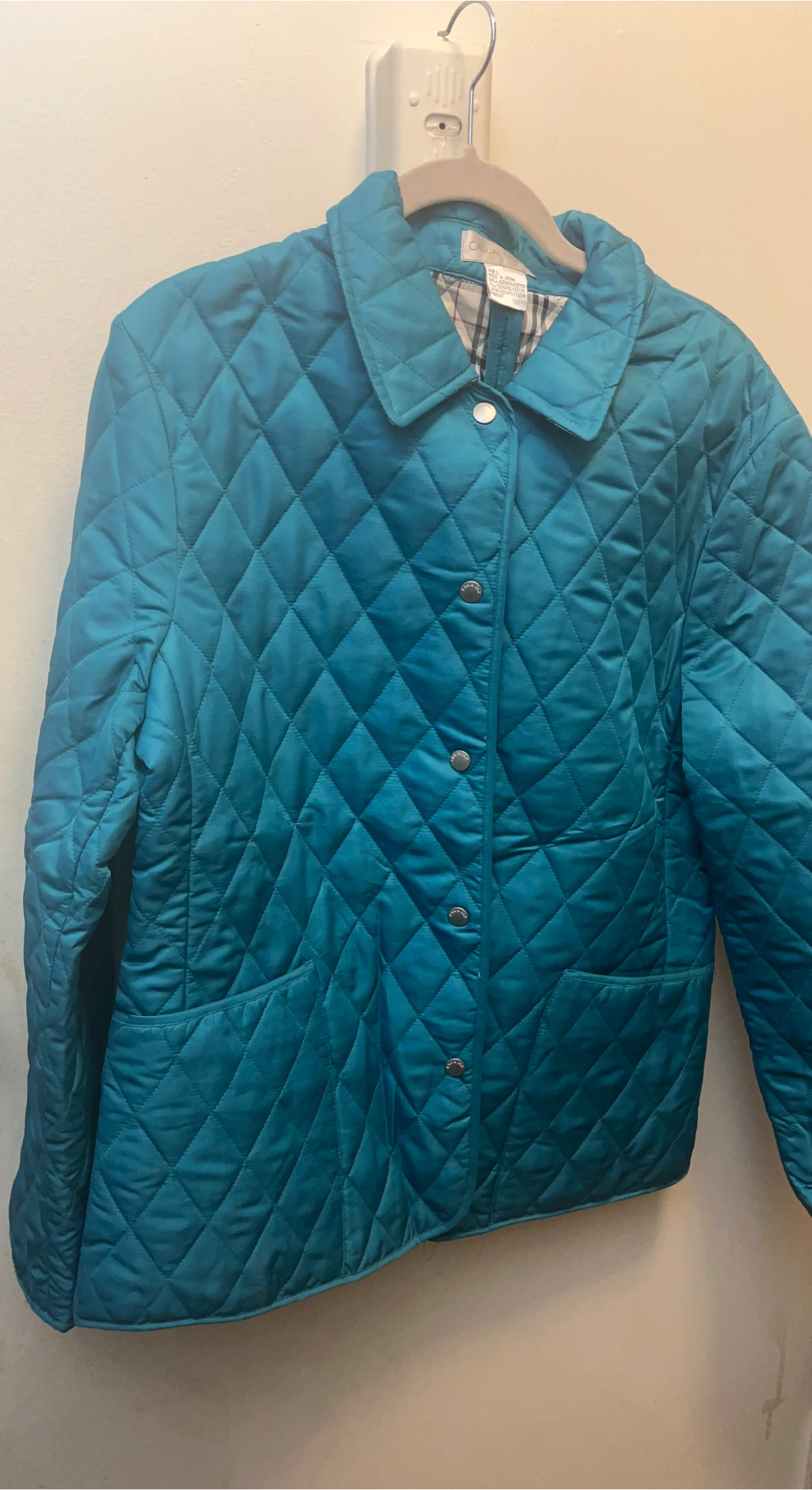 Selling a Casual Isle quilted jacket in a beautiful teal color! It's a size L and made of shell 100% polyester, lining 50% polyester 50% rayon, and fill 100% polyester