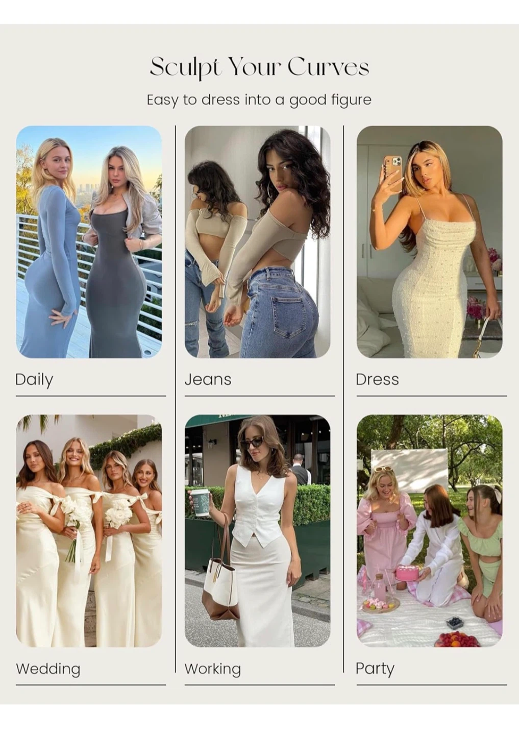 Smart Dual-Layer Targeted Compression - OEAK tummy control shapewear features Scalloped X-Compression technology to sculpt your waist naturally, creates an hourglass figure, offering super strong support without discomfort. Engineered with double-knit contouring panels, this seamless shapewear effectively smooths your abdomen, waist, and lower back - perfect for wearing under dresses or as a slimming waist trainer.