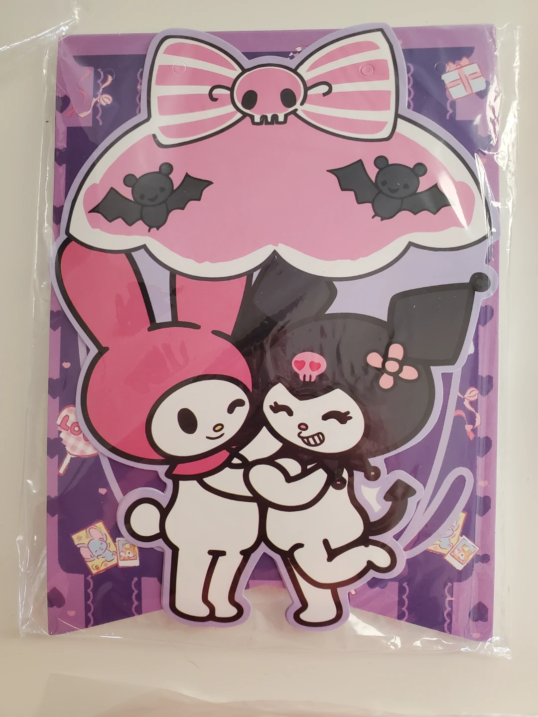 - 16 Balloons featuring Sanrio's Kuromi character. (Ribbon & Adhesive dots)