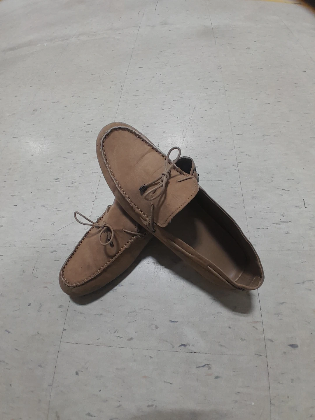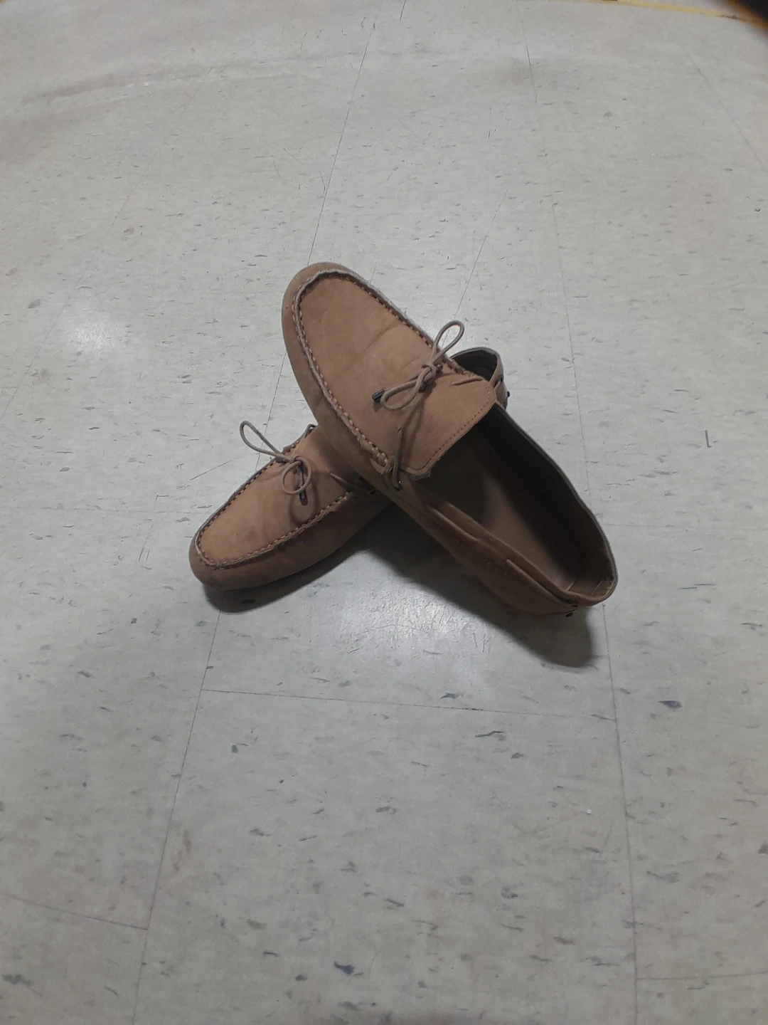 Moccasin loafers shoes are made of suede. They feature a classic tie detail across the vamp. Great for casual wear! Original Sondergaard Men's Size 10.5