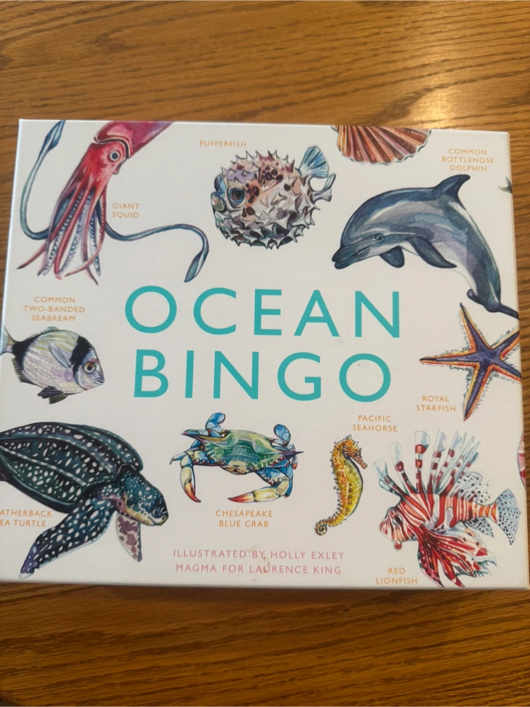 This family-friendly game is packed with ocean creatures for hours of bingo fun. It includes 64 image cards, a game board, and 200 counters. It's suitable for up to six players.