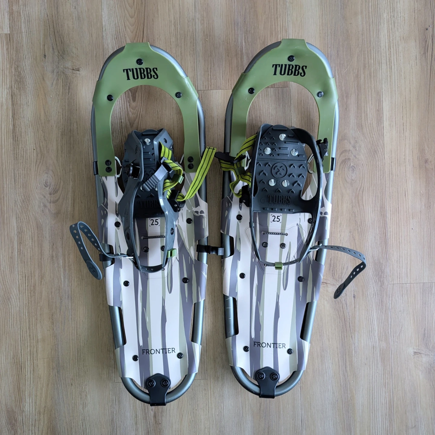 Selling snowshoes Tubbs Frontier Unisex, size 25 inches, because they are a bit large for me. Condition is like new with a couple scratches on the tubes. I used them once only for 10 km trip on fresh snow. Open to trade for a similar item of size 22 inches.