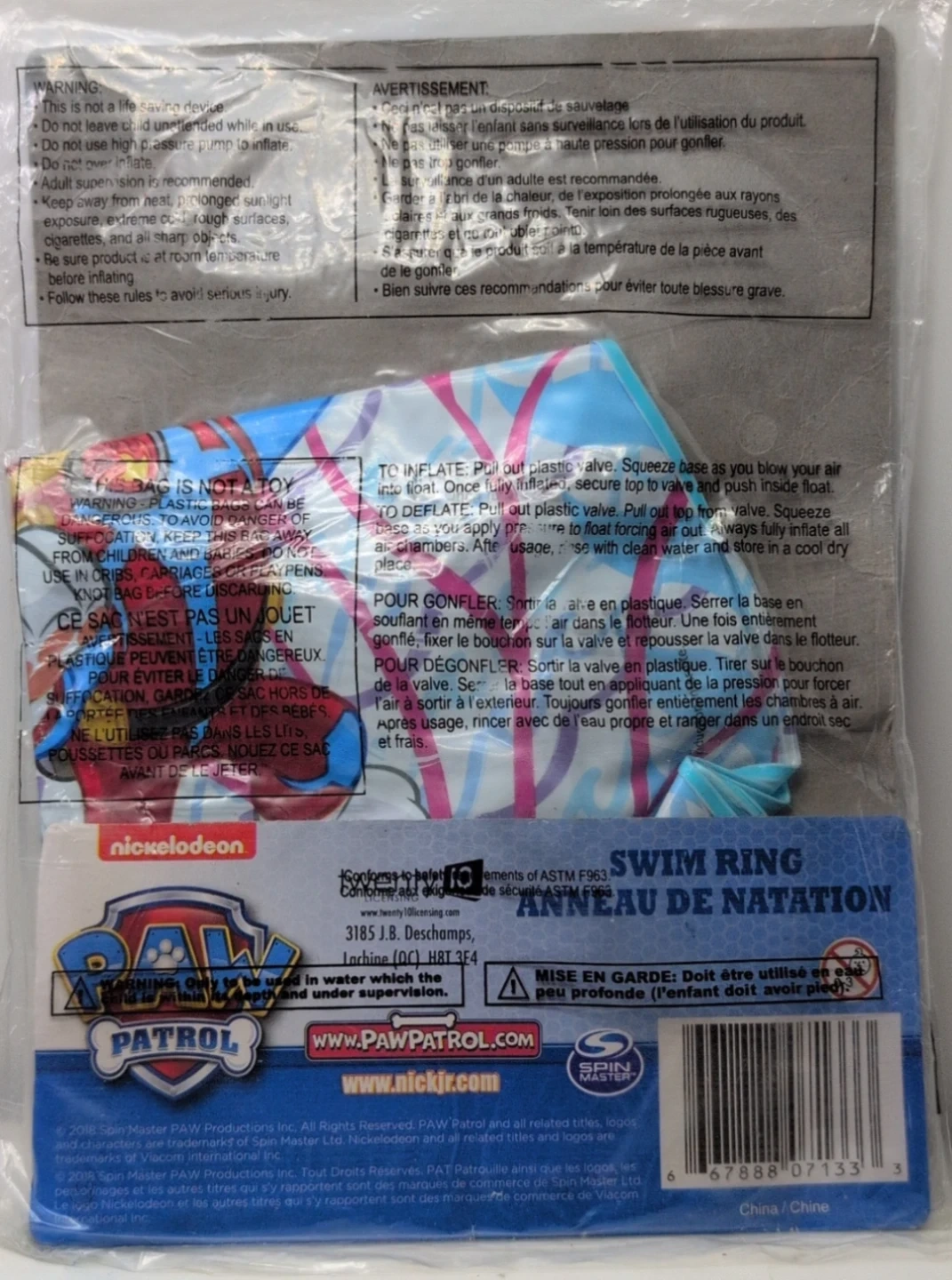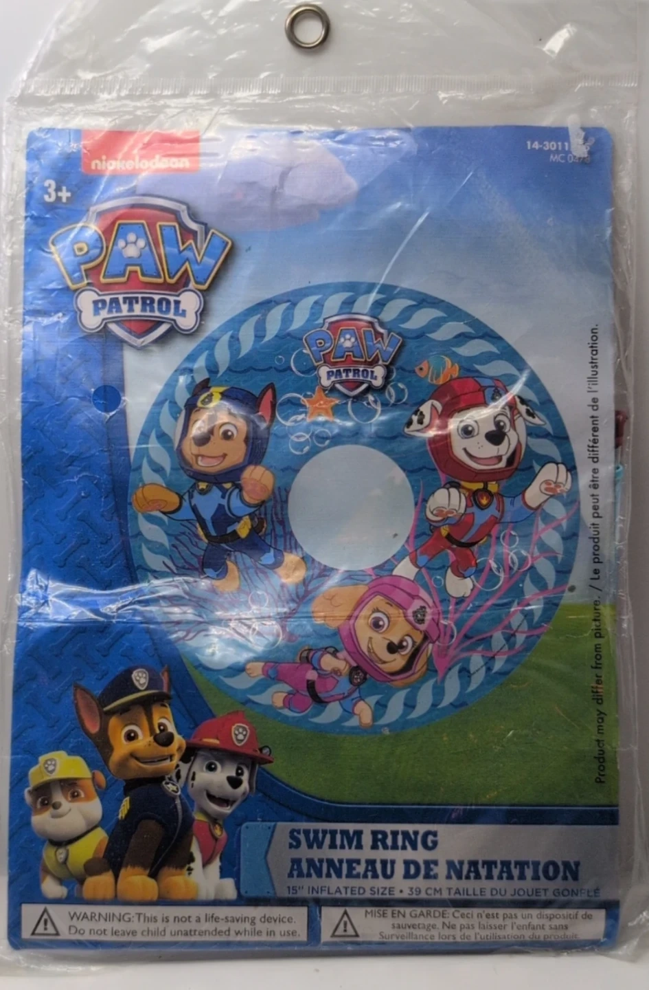 This Nickelodeon Paw Patrol swim ring is designed for kids aged 3 and up. It's 15 inches (39 cm) when inflated. It's perfect for little ones enjoying some fun in the water! 2 items available. π―% money back guarantee if item doesn't work as it should all question are welcome