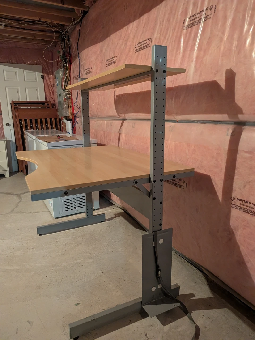 Selling a heavy duty industrial desk with an attached adjustable height shelf. It's in good condition and ready for a new workspace! Perfect for a home office or study area.