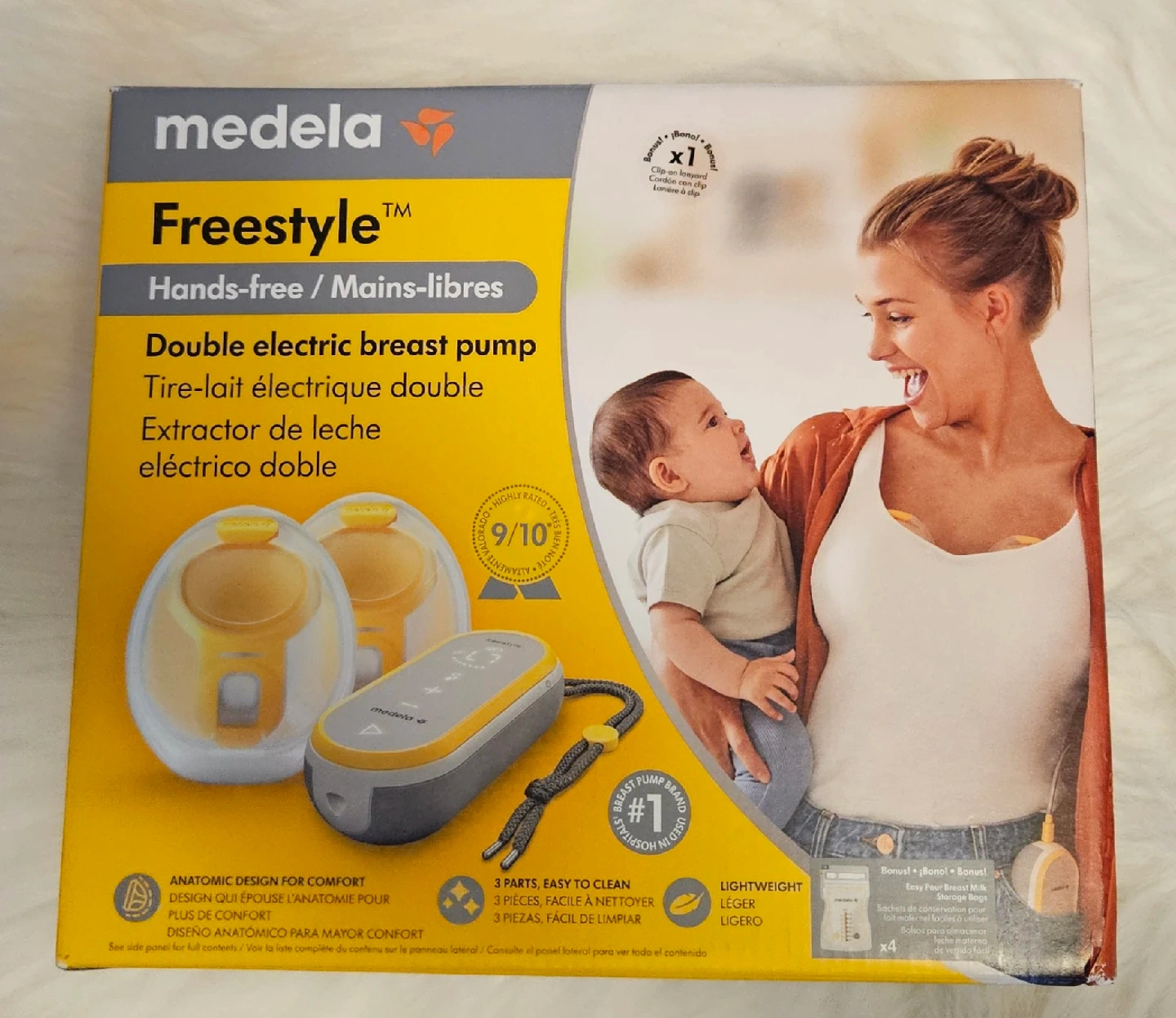 I'm selling a brand new Medela Freestyle hands-free double electric breast pump! It's lightweight and easy to clean. This pump is highly rated and designed for comfort. It also comes with a clip-on lanyard and 4 easy-pour breast milk storage bags. Box is included!