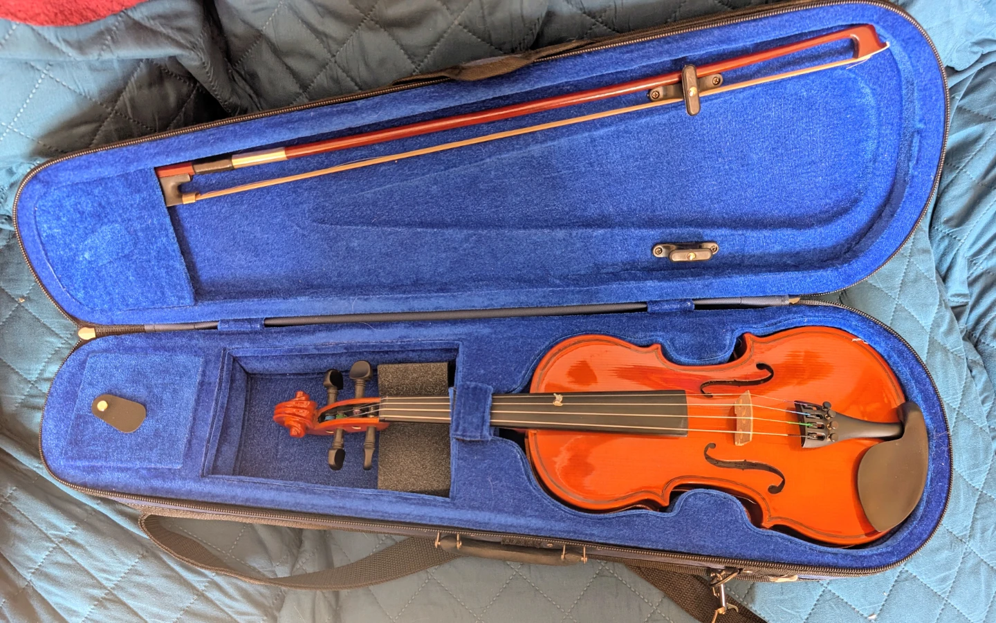 Selling a 1/8 size Menzell violin in like-new condition, only used for two lessons and always kept in the case. Will fit the average 5-6 year old.