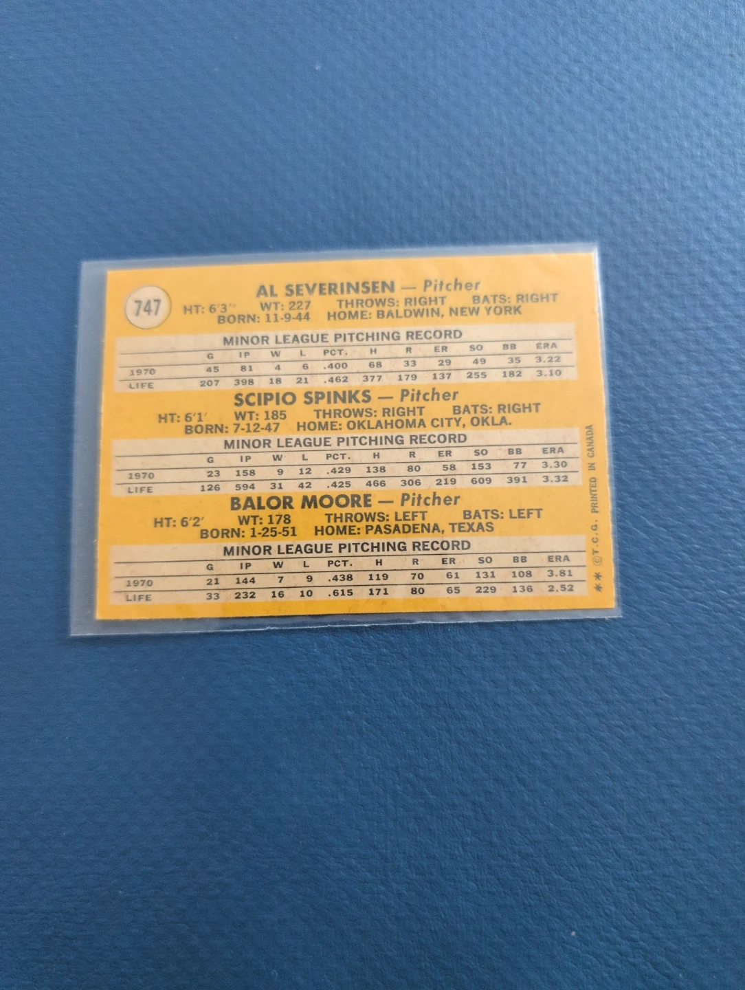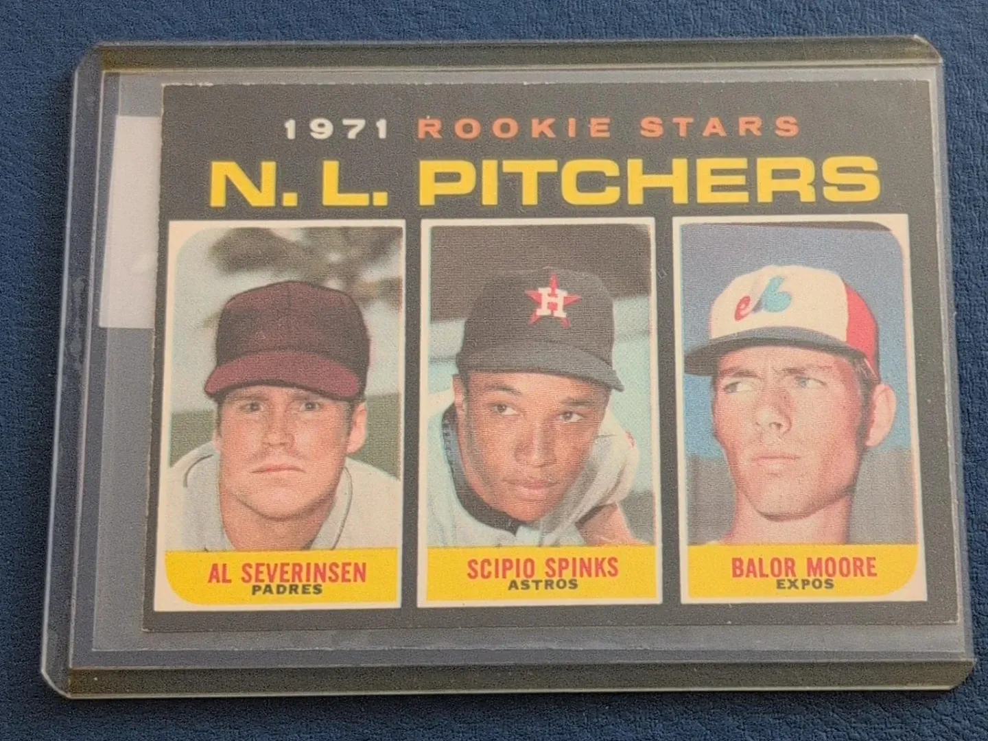Buy & Sell1971 Topps Rookie Stars N.L. Pitchers Baseball Card1971 Topps Rookie Stars N.L. Pitchers Baseball Card$22This is the 1971 Topps Rookie Stars N.L. Pitchers baseball card featuring Al Severinsen, Scipio Spinks, and Balor Moore. It's a vintage collectible for baseball fans.WHERE TO MEETFaith Lutheran ChurchView MapSELLERverifiedNX4Z44VKeele and Finch590 reviews2 chats·2 favorites·26 viewsSEND CHAT TO SELLERHi NX4Z44V! I’m interested in your listing.Hi NX4Z44V! I’m interested in your listing.Get the Karrot app to chatSign In to chat