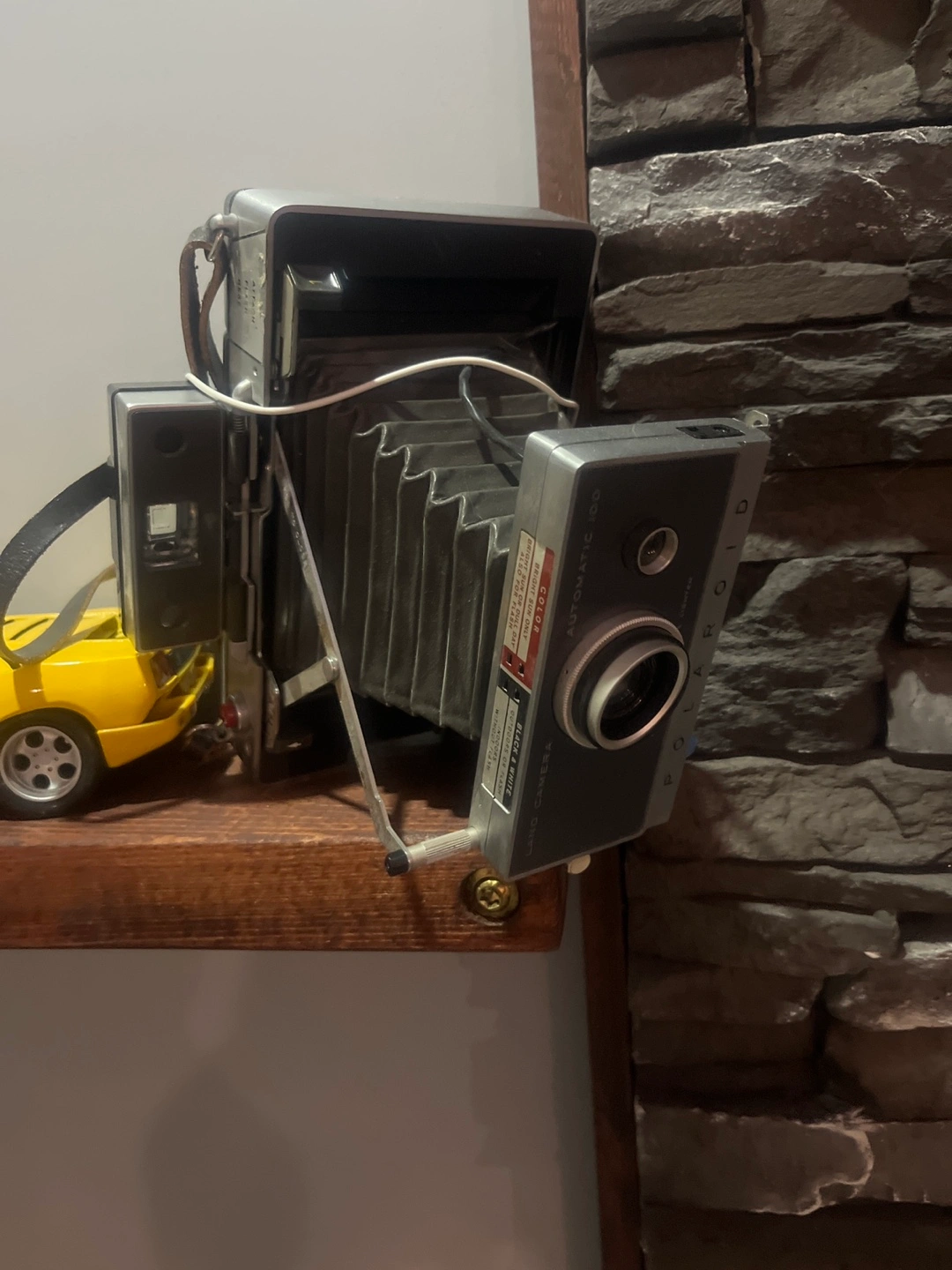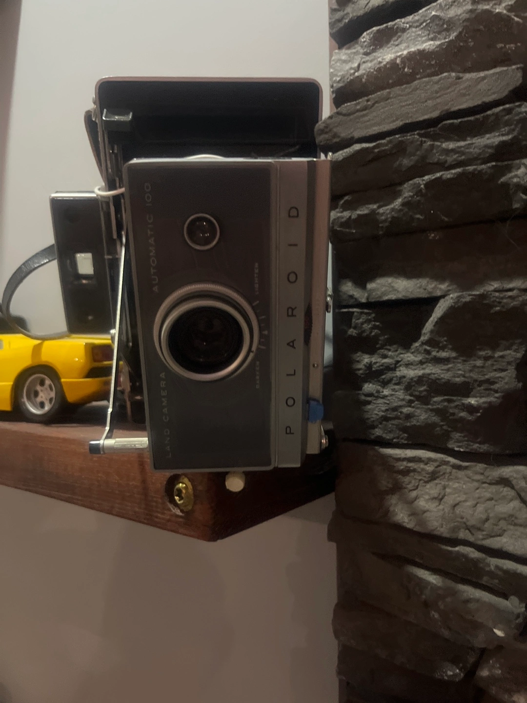 Classic Polaroid Land Camera, Automatic 100 model. Shows its age, some wear and tear. Great collector's item or for a unique photography experience.