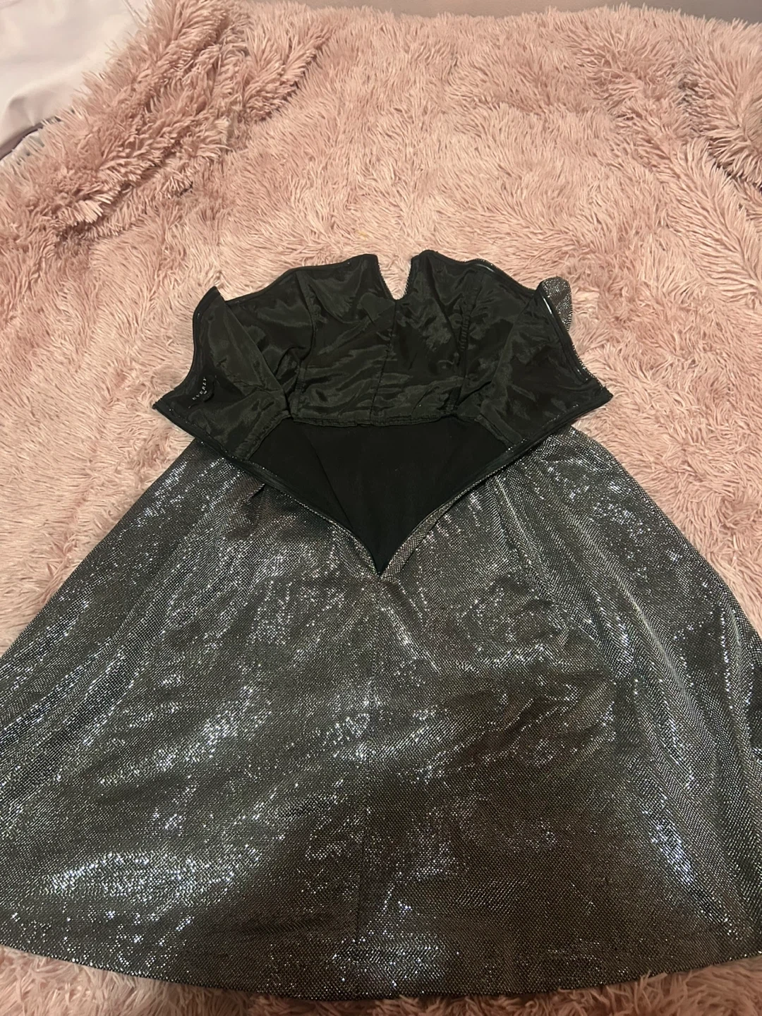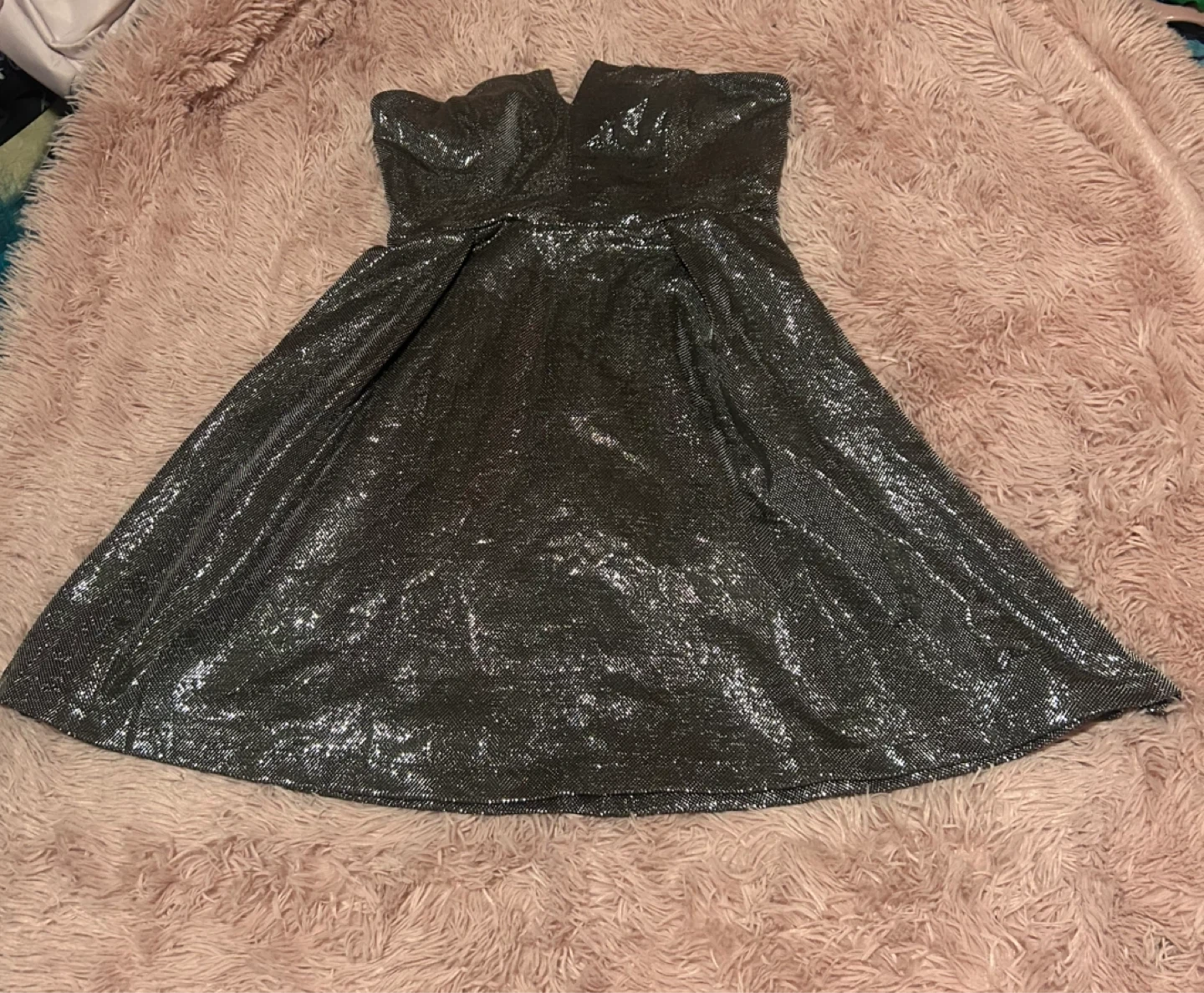 Sparkly strapless dress from Everly. It's a size large with a metallic sheen. Perfect for a night out! Size large fits more like a medium!