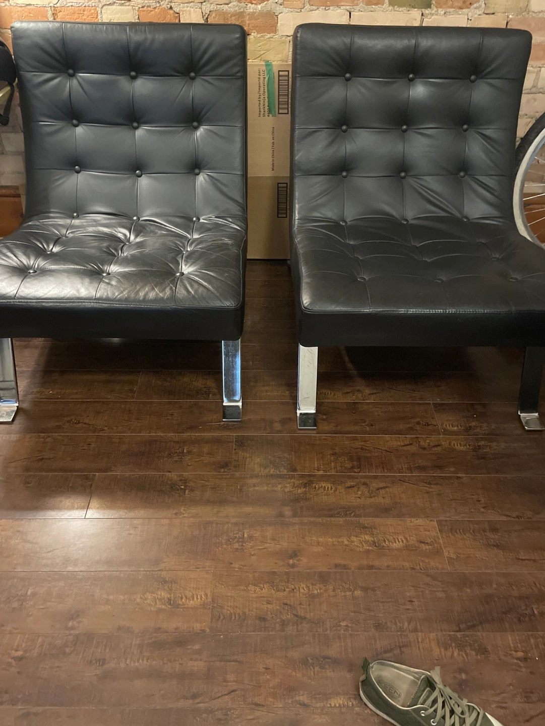 Buy & SellLeather chairs (2)Leather chairs (2)$150Two black leather chairs with chrome base. Some scratches on the chrome. $150 each/$250 for 2. These chairs retail $800 new.WHERE TO MEETCarlton at sherbourneView MapSELLERKimCabbagetown1059 reviews2 chats·1 favorites·52 viewsSEND CHAT TO SELLERHi Kim! I’m interested in your listing.Hi Kim! I’m interested in your listing.Get the Karrot app to chatSign In to chat