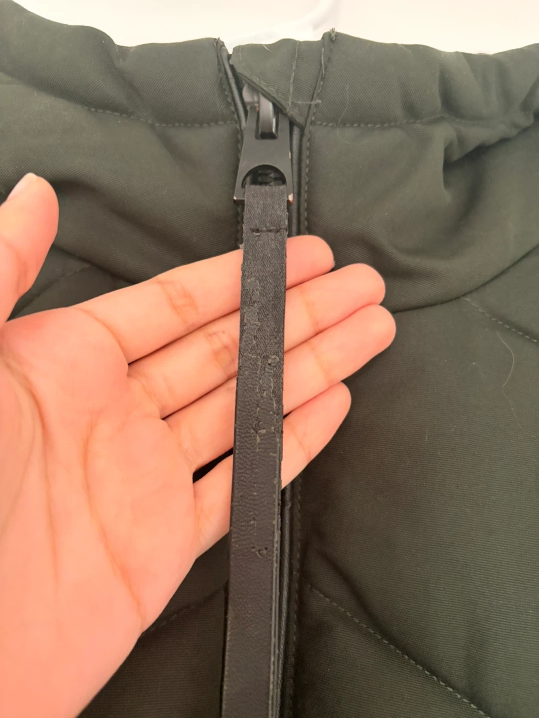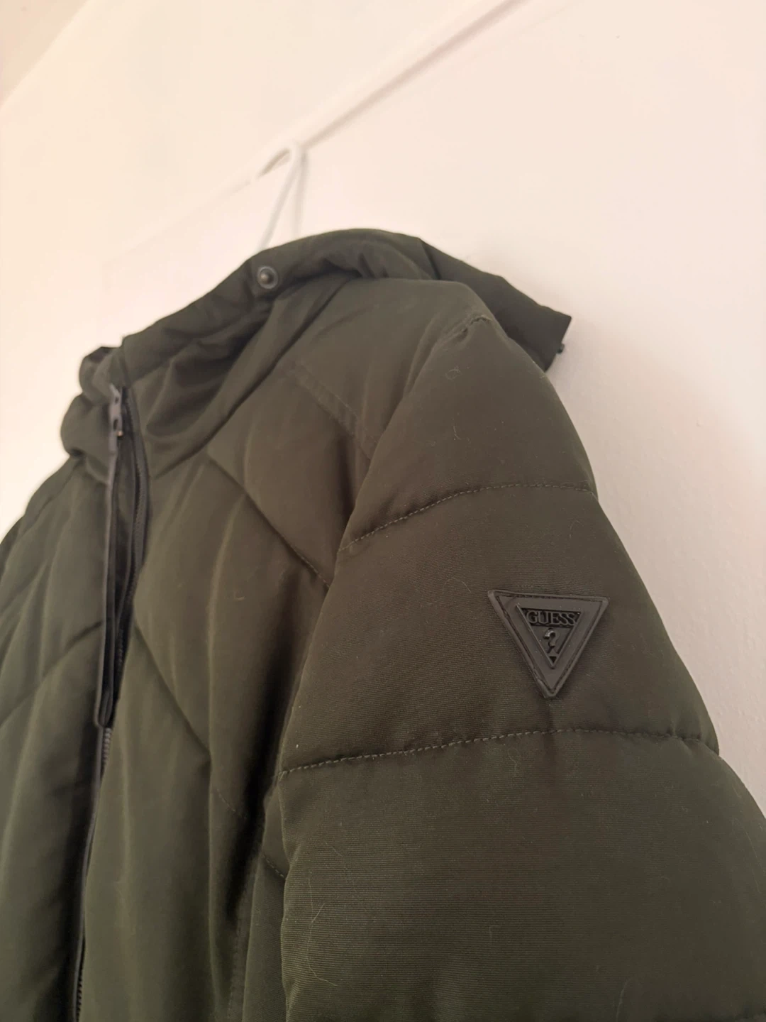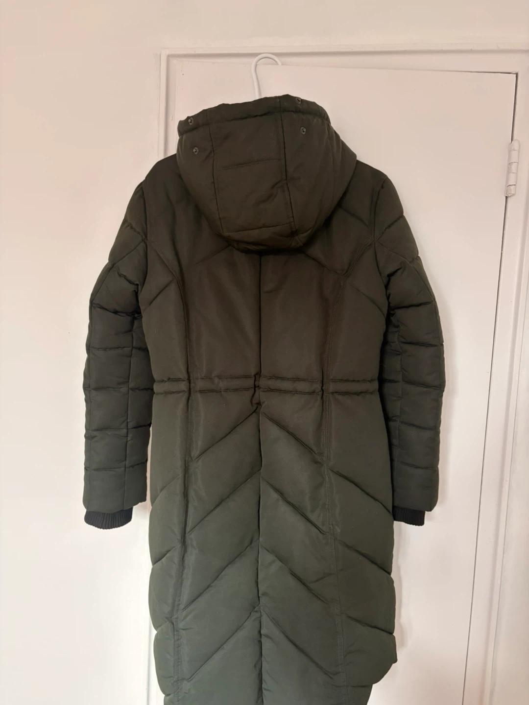 Long olive green winter coat from Guess. Very warm and great for Canadian winters.