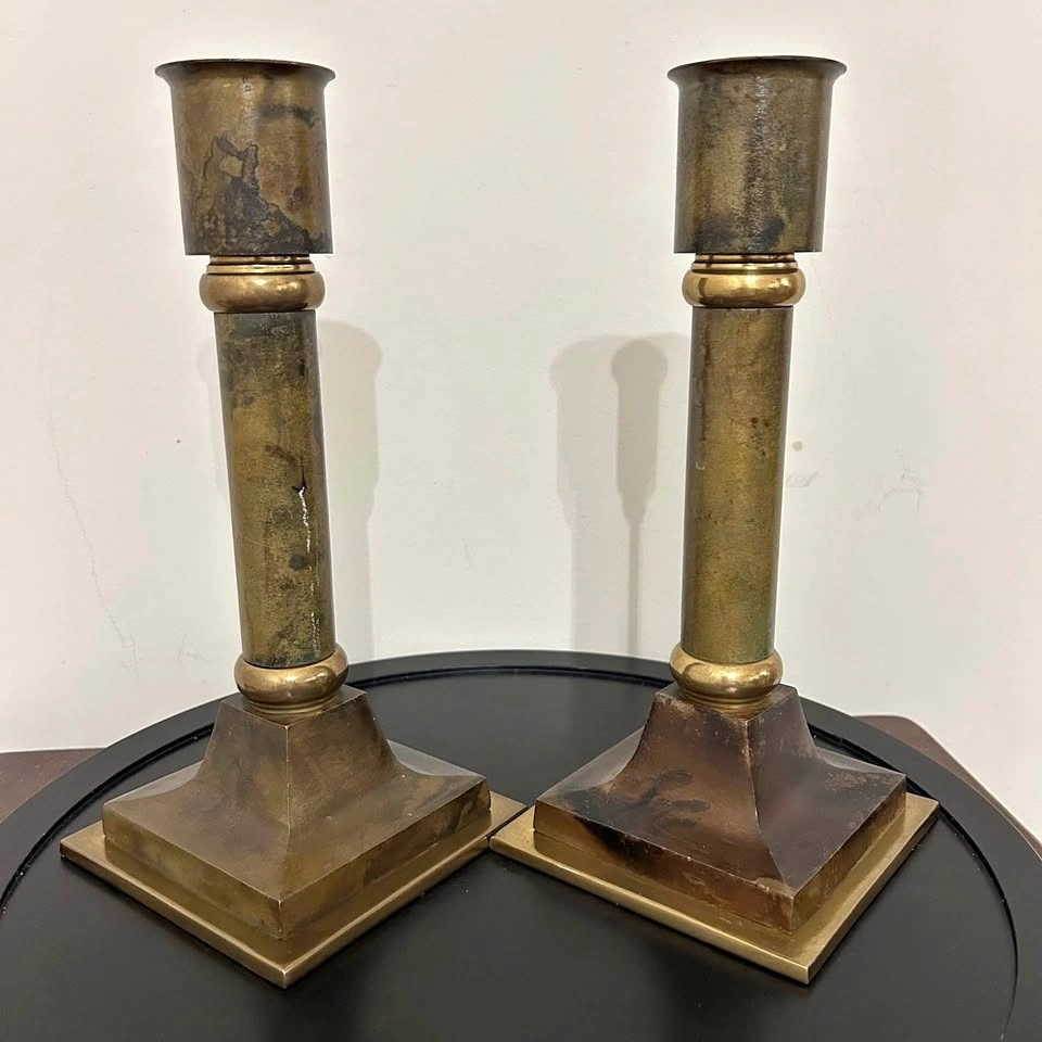 Vintage Large Solid Brass Altar Candlesticks – Neoclassical 10”