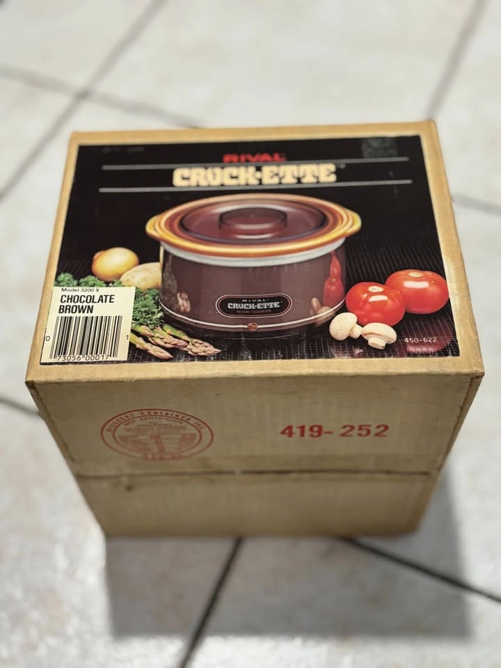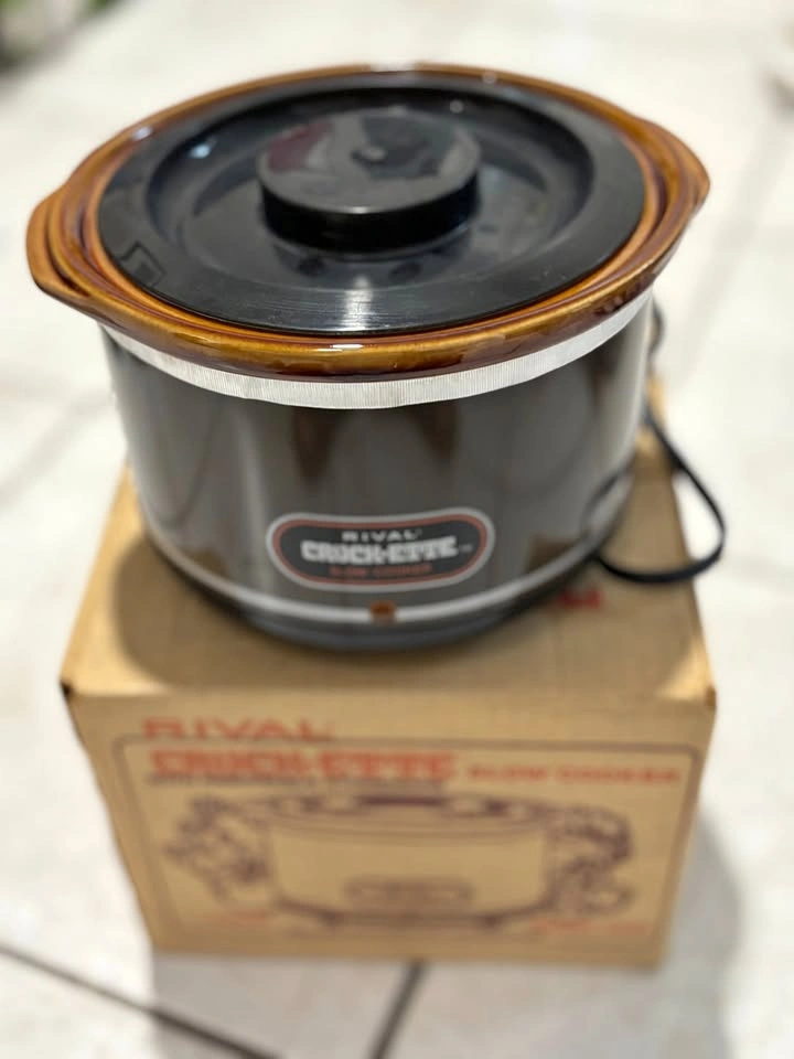 Used only once. Kept as new. Tested and working! With original box and manual. Vintage Rival Brown CROCK-ETTE 1 QUART Stoneware Slow Cooker Model 3200. This small 1 quart model is perfect for 1 or 2 people and gives an instant vintage look to any kitchen. Great for a gift or present for any occasion.