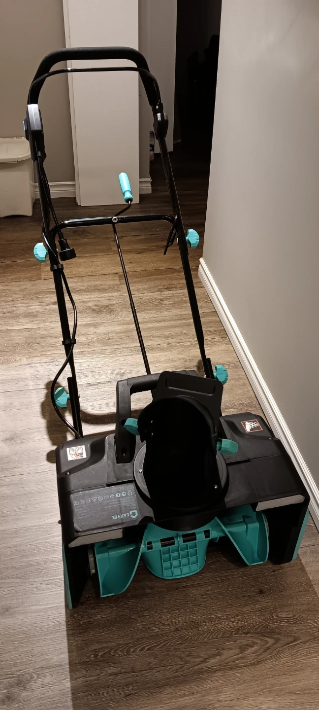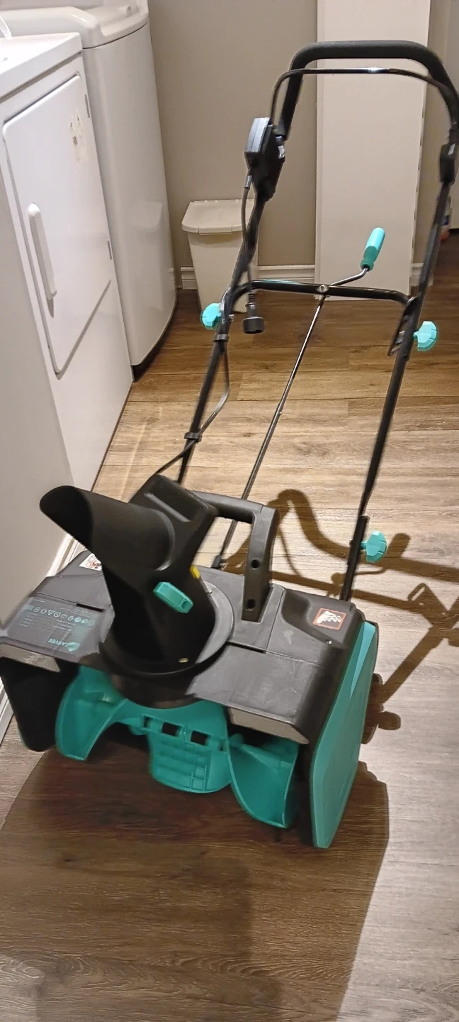 Electric snow blower in NEW condition. It's great for quickly clearing driveways and walkways after a snowfall. It's lightweight and easy to maneuver.