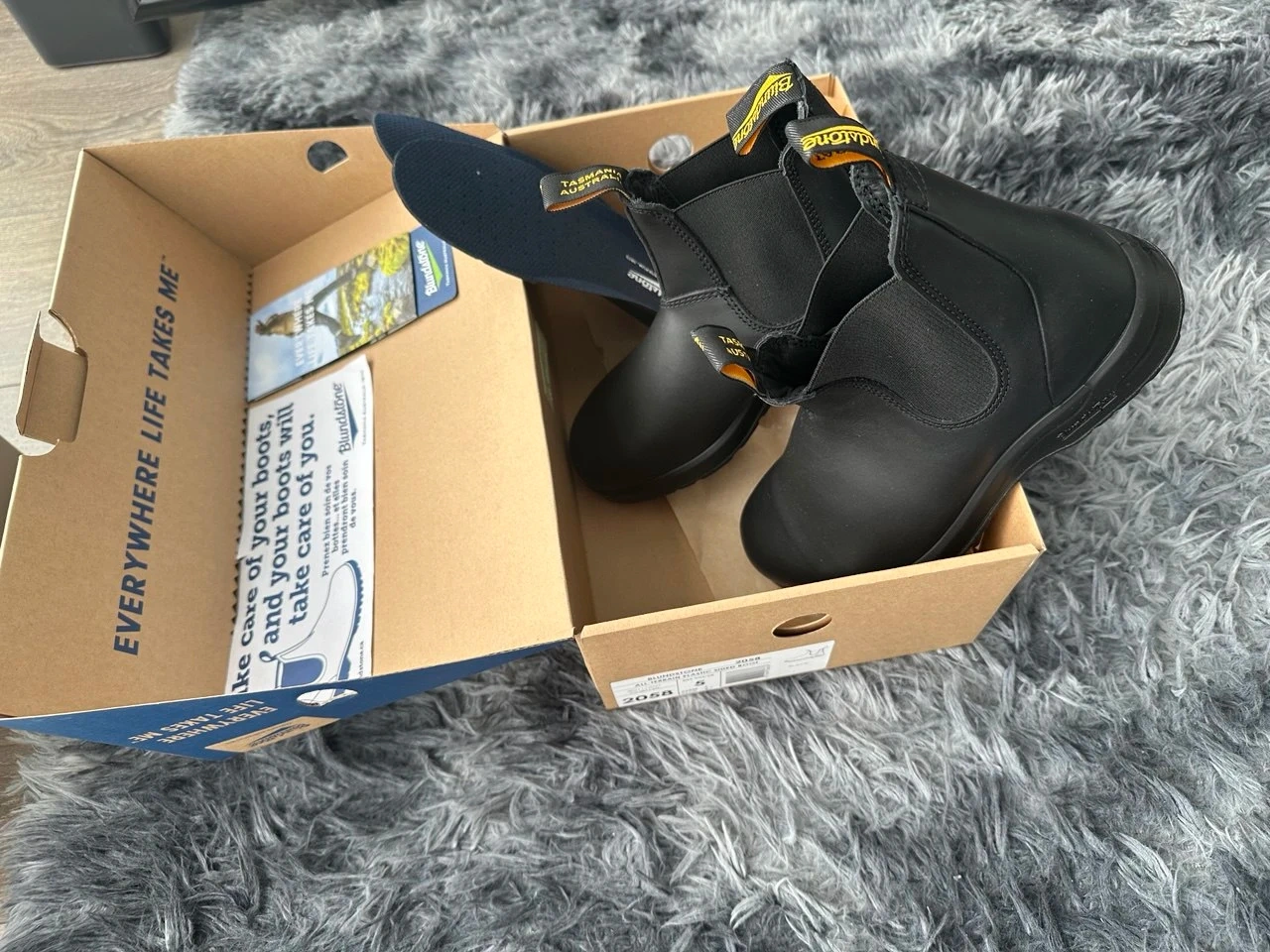 Brand new, unworn Blundstone #2058 All-Terrain elastic sided boots in black. These boots are a US size 8 Women/US size 6 Men. They come in their original box with care instructions. Built for rugged wear with a Vibram outsole for grip. Made with leather for durability. These boots are perfect for everyday wear.