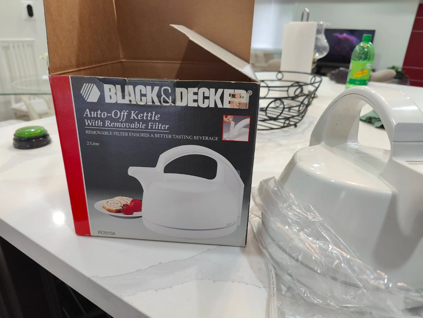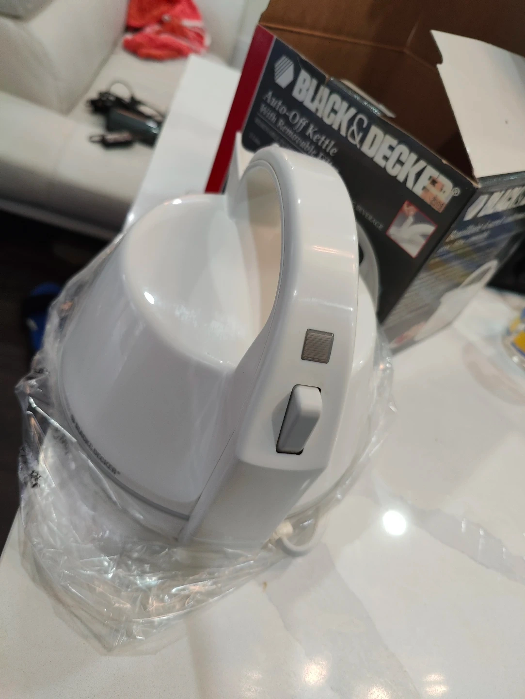 Selling a Black & Decker Auto-Off Kettle, model KE2010A. It's in excellent condition and comes with its original box. This kettle has a removable filter to ensure a better tasting beverage. It holds 2 litres. Great for making tea or coffee quickly and easily!