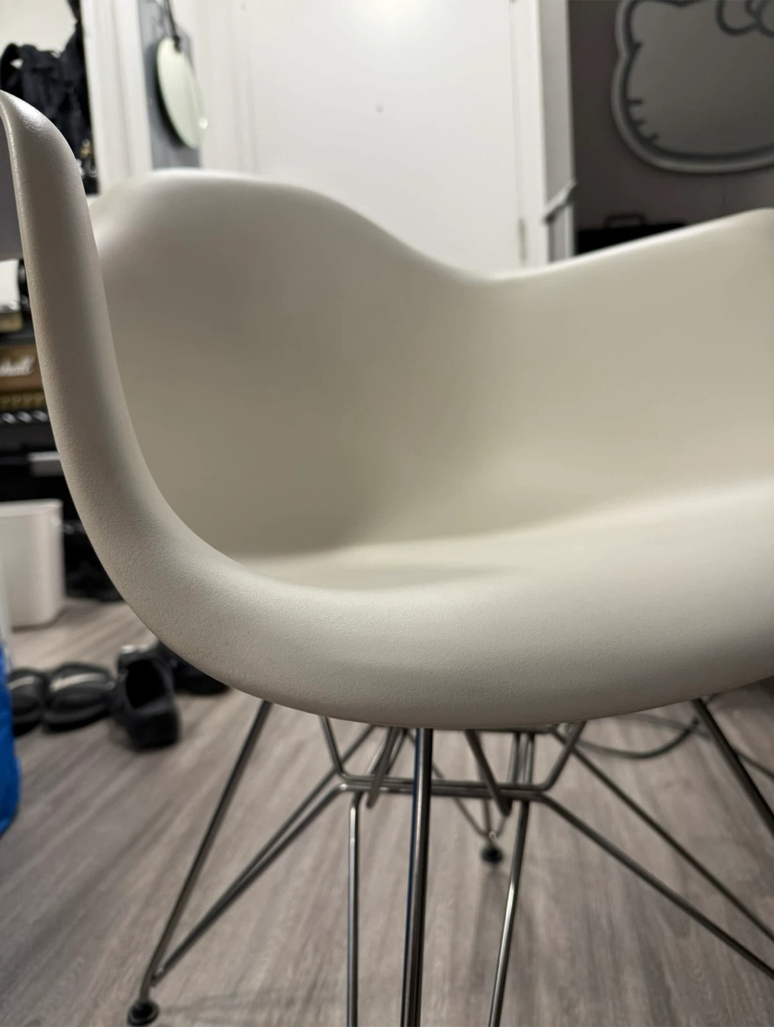 100% Authentic White Eames MOLDED Plastic Armchair with Chrome Wire Legs -Excellent Condition