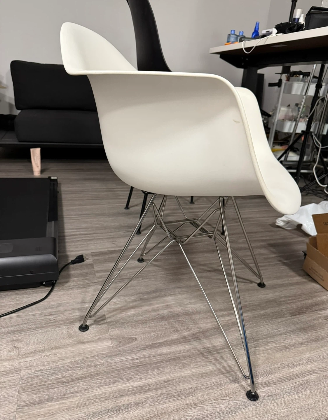 100% Authentic White Eames MOLDED Plastic Armchair Chrome Legs