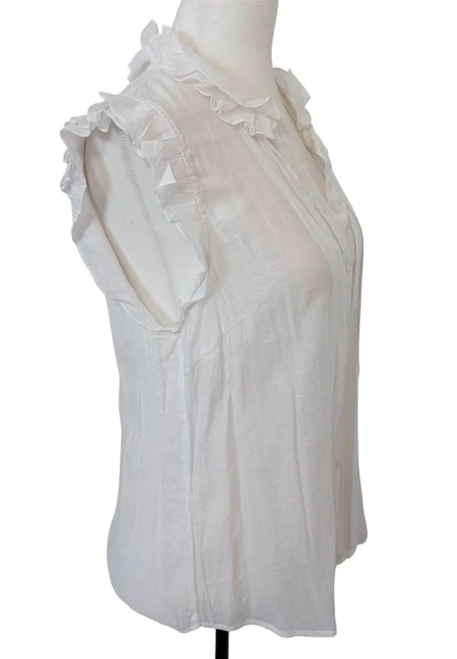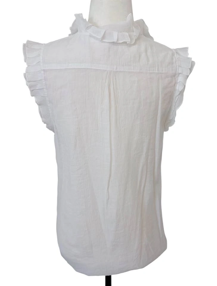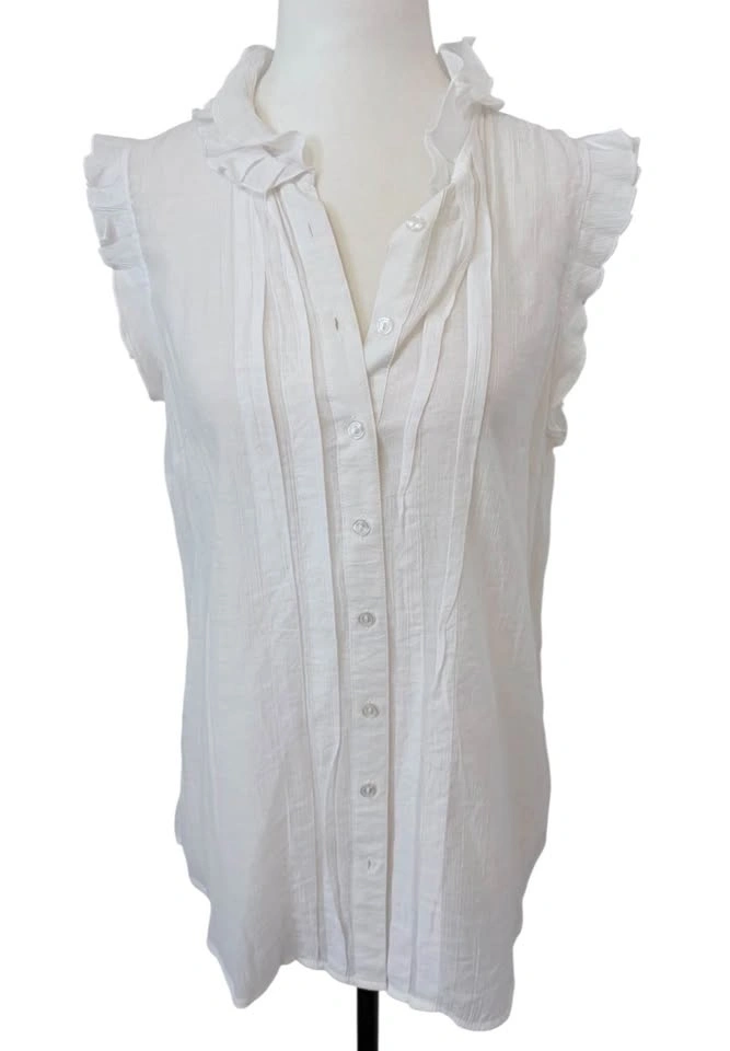 White Ruffle Sleeveless Button Down Pintuck Blouse - Size L