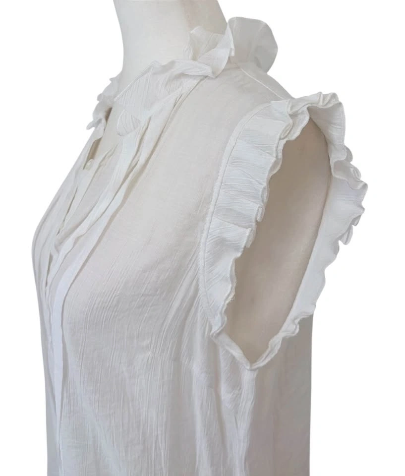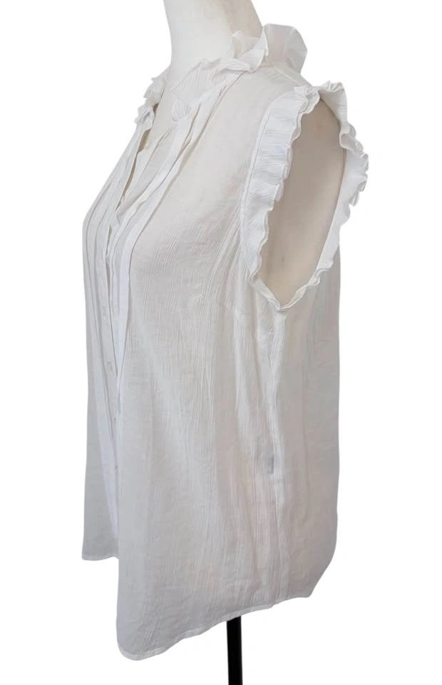 White Ruffle Sleeveless Button Down Pintuck Blouse - Size L