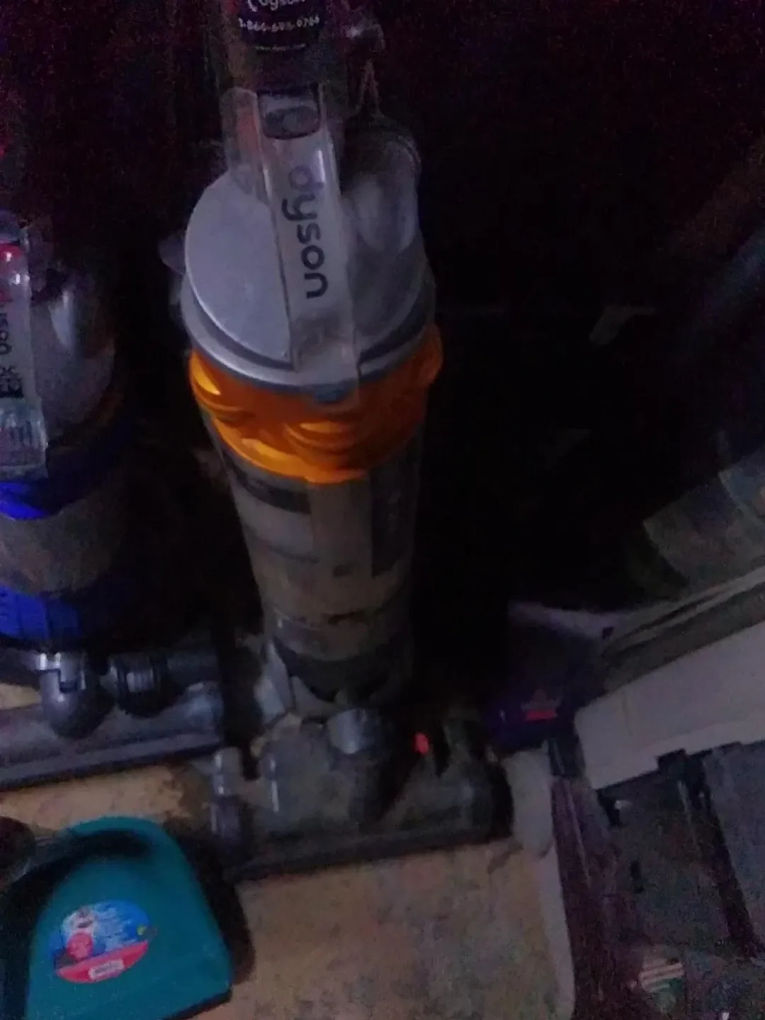 This is a Dyson upright vacuum cleaner. It's a powerful cleaning tool. Used for floor care.
