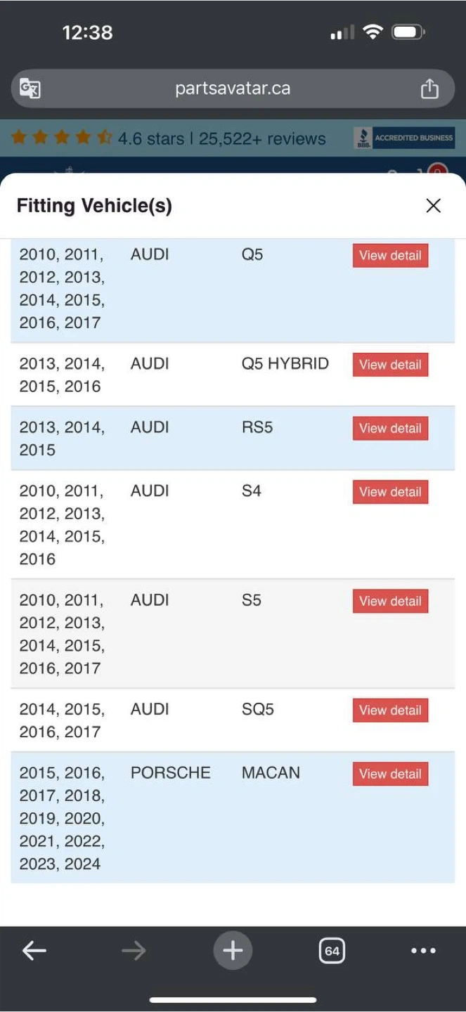 • Audi A4 / A5 / S4 / S5 / Q5 / SQ5 (approx. 2010–2017)
