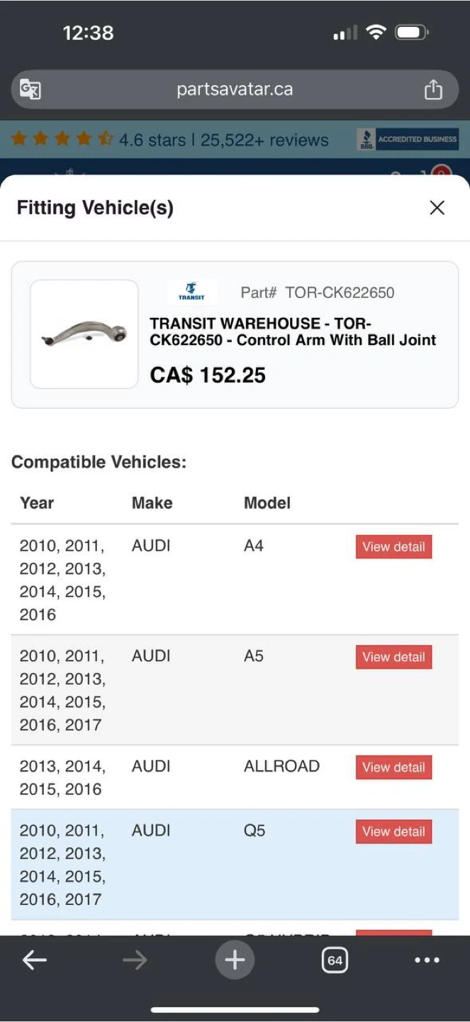 • Brand: TOR Steering & Suspension