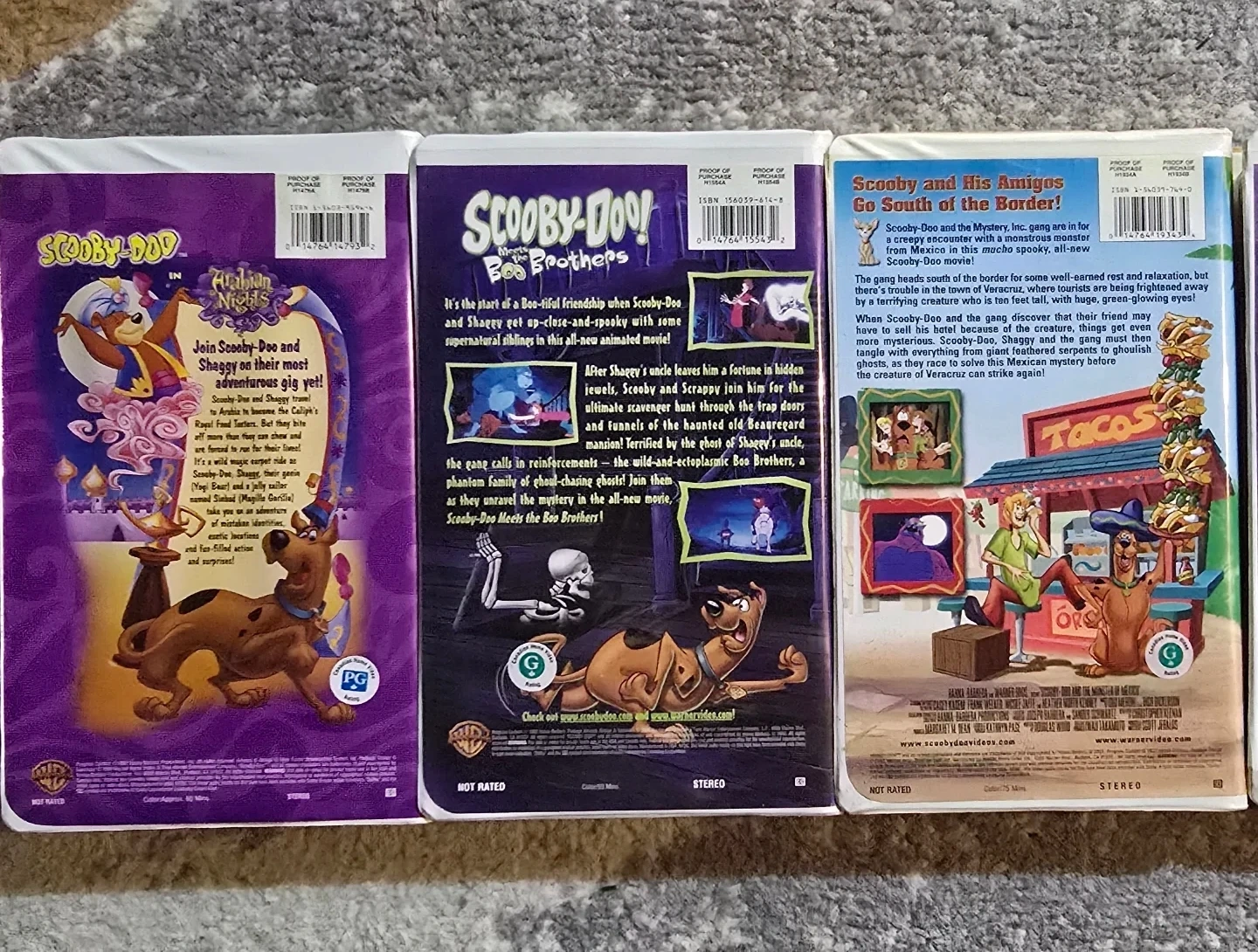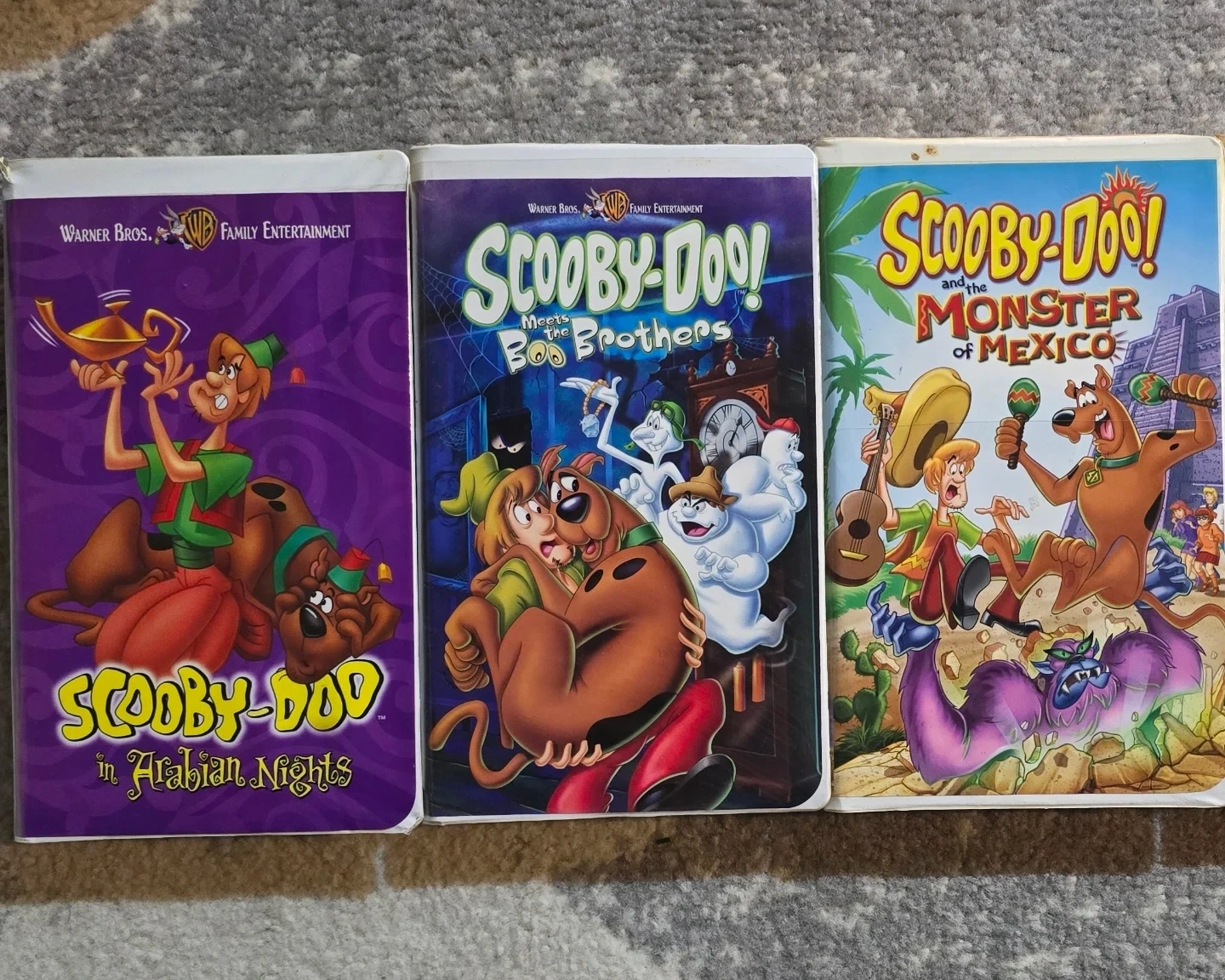 Selling a set of three Scooby-Doo VHS tapes! Includes Scooby-Doo and the Monster of Mexico, Scooby-Doo Meets the Boo Brothers, and Scooby-Doo in Arabian Nights