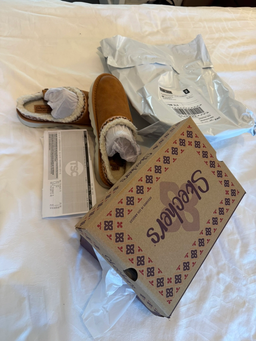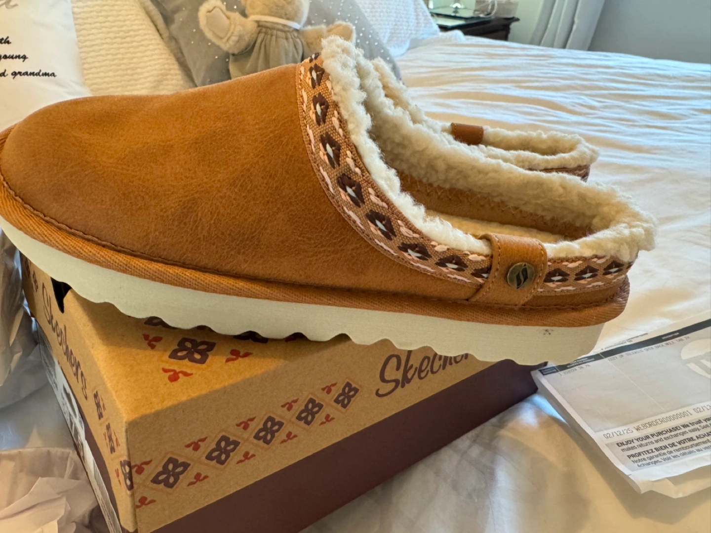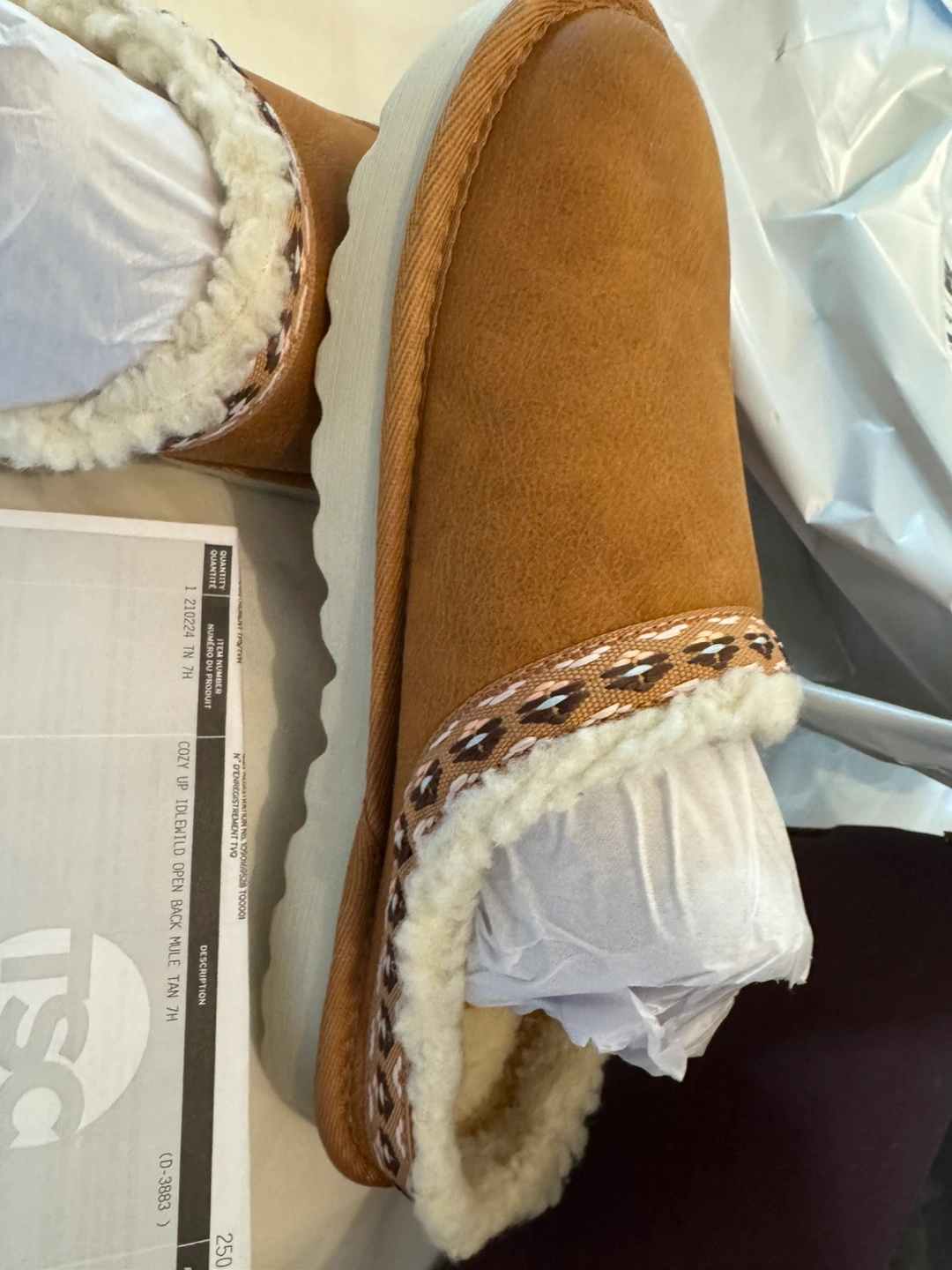 Brand new women's Skechers clogs. Tan suede upper, shearling lining. Memory foam insole. Cozy and comfortable. Size 7 H . Pick up in Comox fcfs
