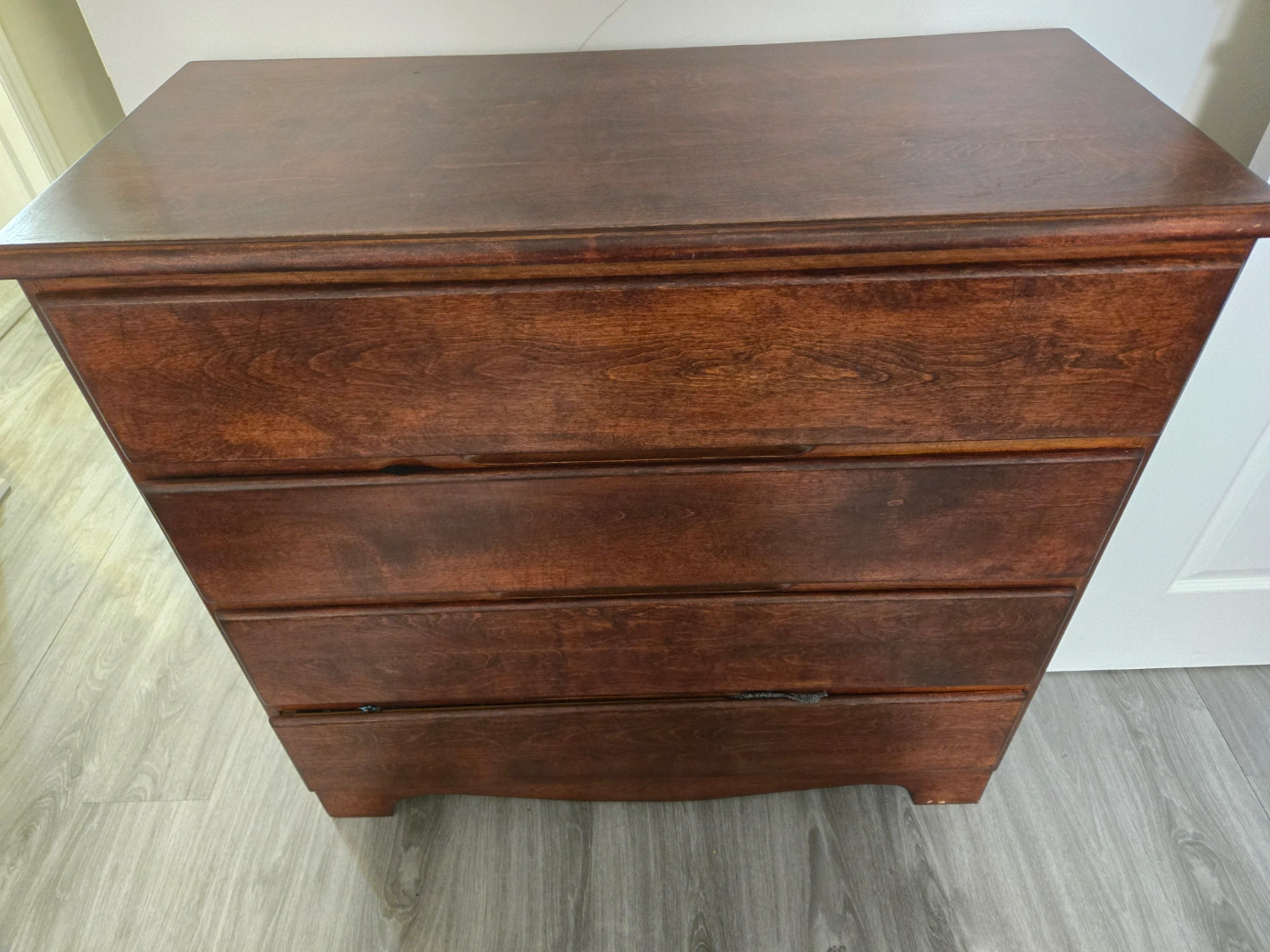 Buy & SellFour-Drawer Wooden ChestFour-Drawer Wooden Chest$100Solid wood chest of drawers. Four drawers. Dark brown finish. Some minor wear and tear. Great storage solution.WHERE TO MEETmarkhamView MapSELLERverifiedkarynMarkham Central E681 review0 chats·0 favorites·11 viewsSEND CHAT TO SELLERHi karyn! I’m interested in your listing.Hi karyn! I’m interested in your listing.Get the Karrot app to chatSign In to chat