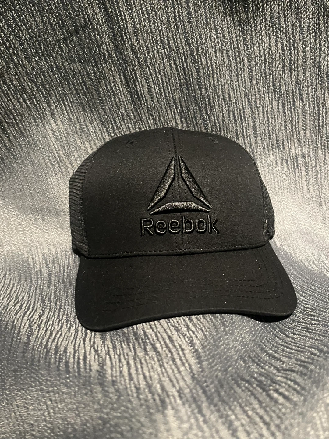 This is a black Reebok trucker hat. It features a mesh back for breathability. Perfect for everyday wear or active days!