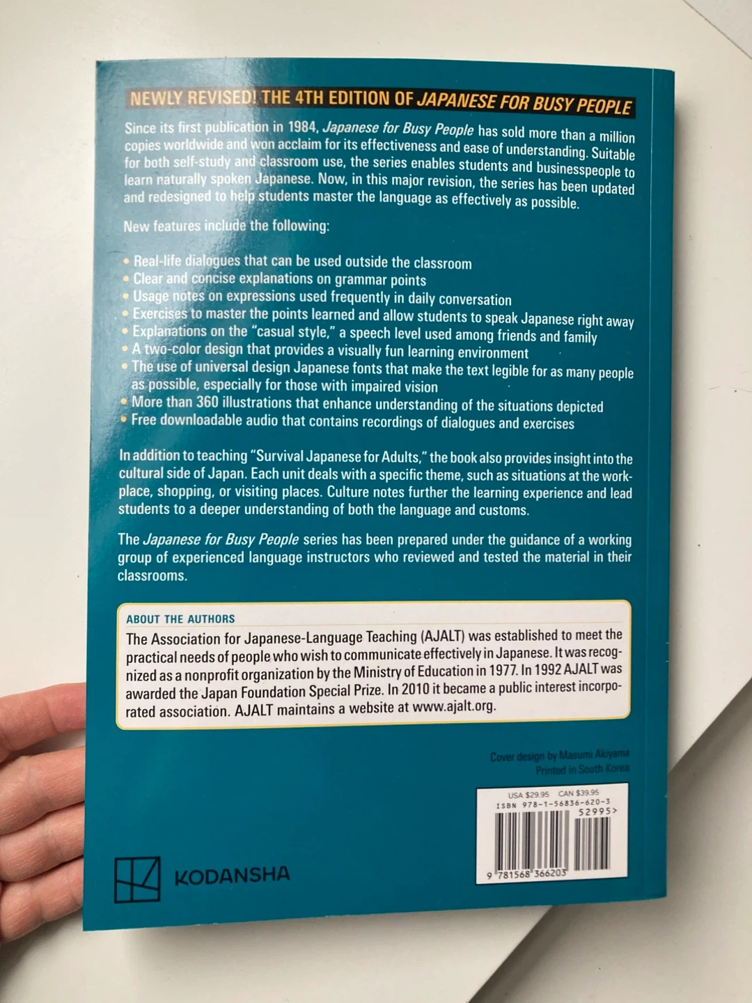 This textbook is the Revised 4th Edition of Japanese for Busy People I. It's designed for self-study and classroom use to help students learn Japanese. The book includes real-life dialogues, clear explanations, and usage exercises. It also features over 360 illustrations and free downloadable audio.