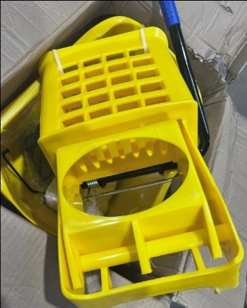 Commercial mop bucket with side-press wringer combo on wheels, 35QT, yellow. Includes one heavy duty industrial mop. Let me know if you're interested!