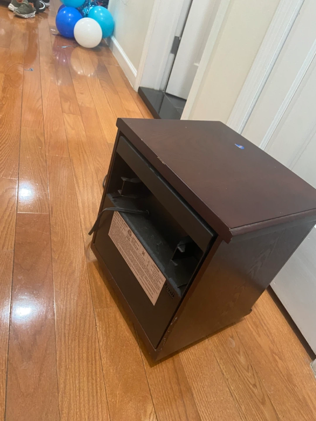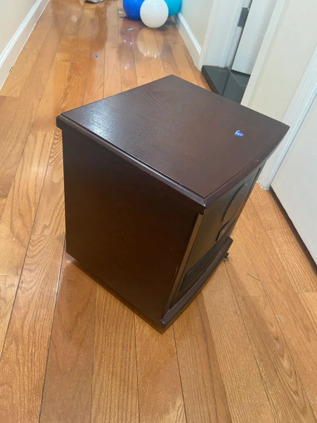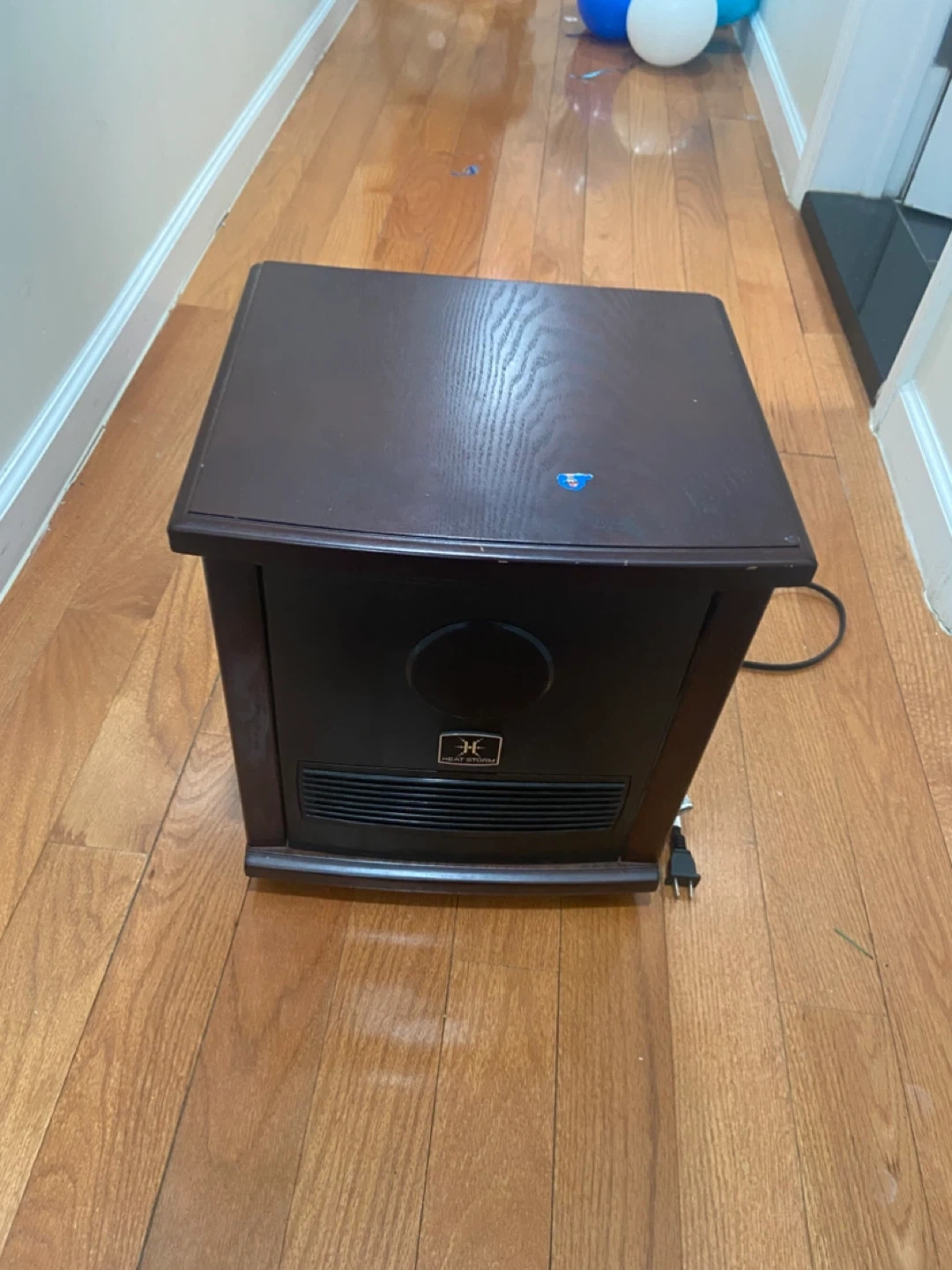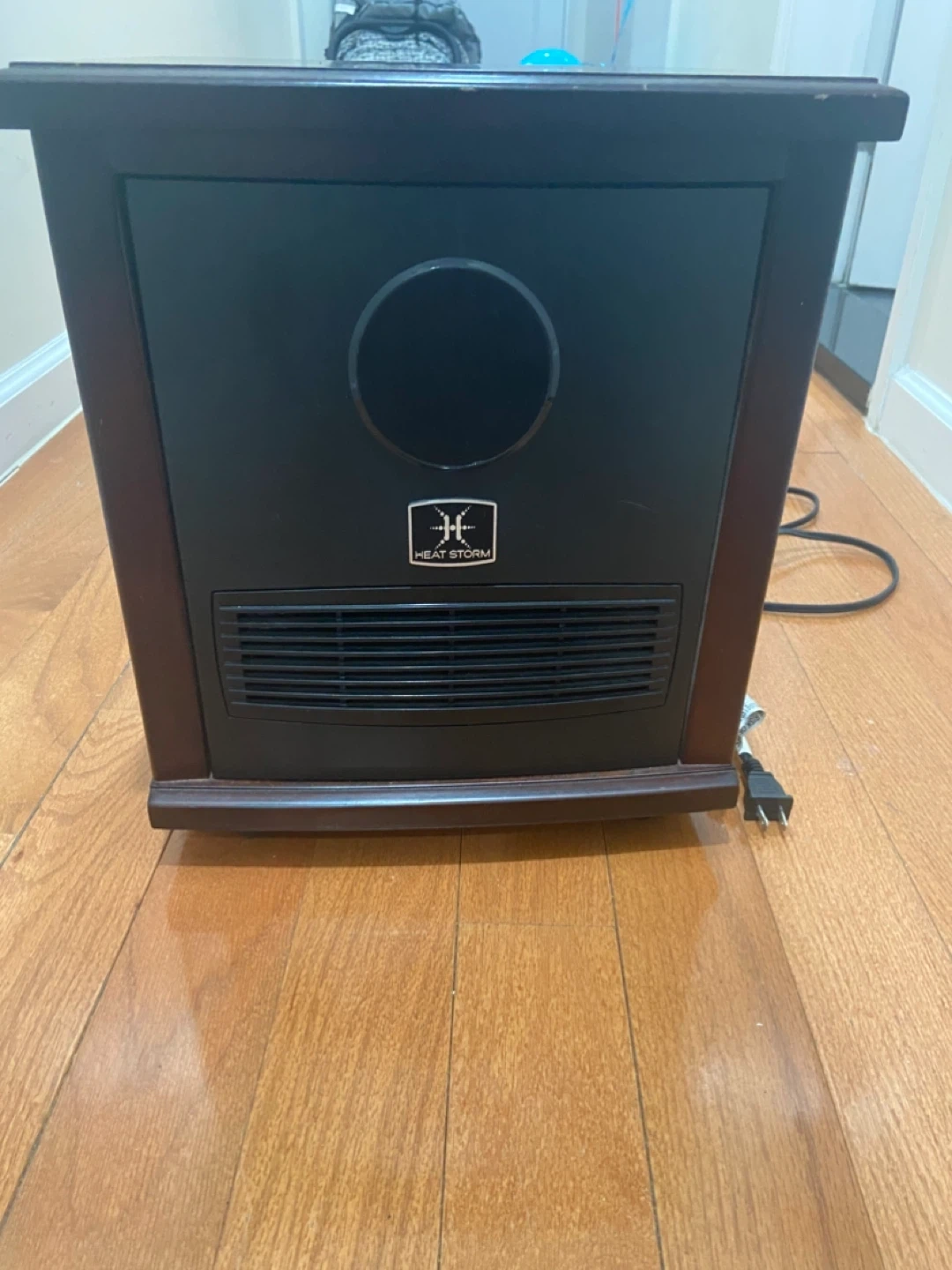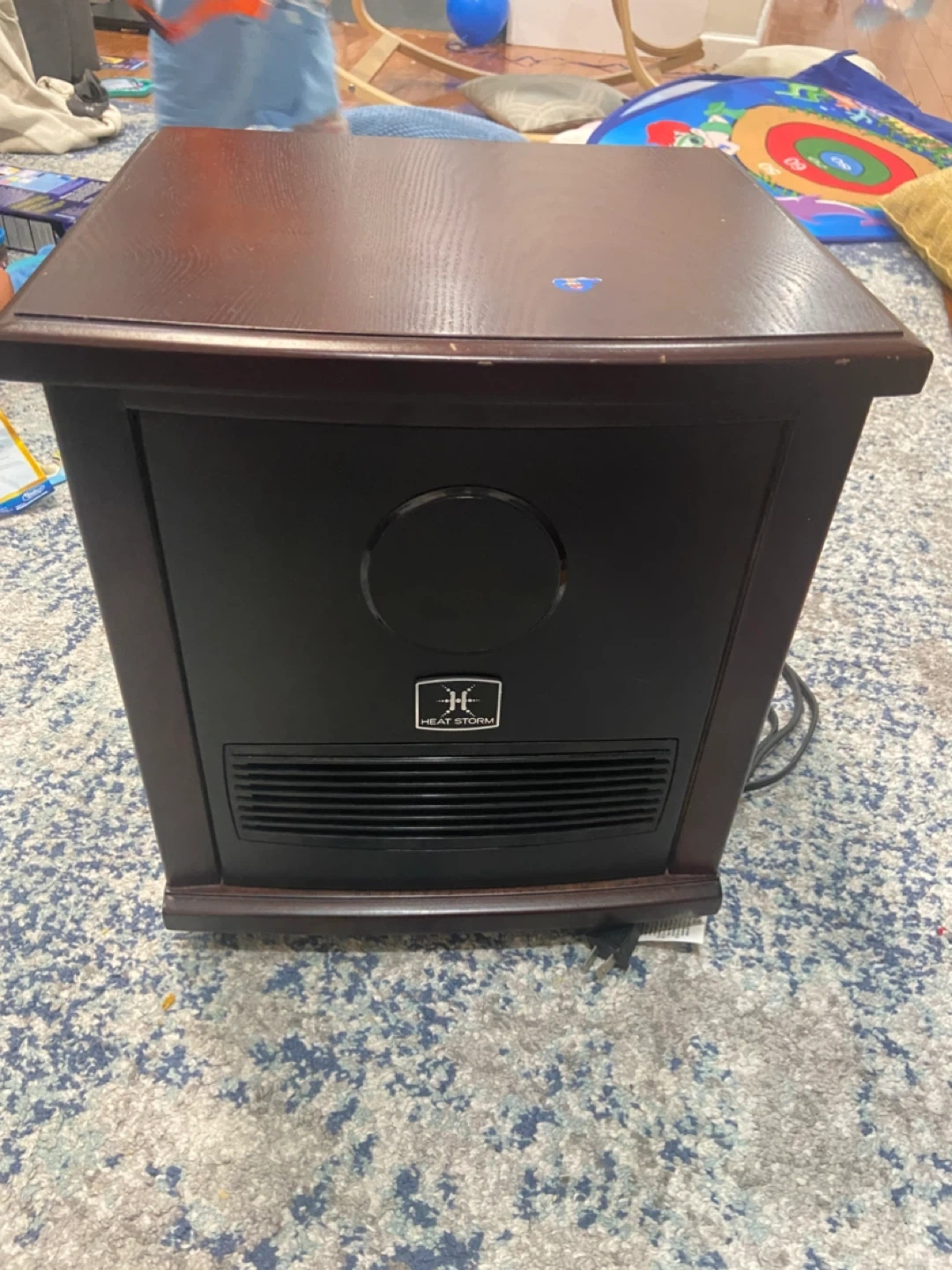 Selling a Heat Storm portable space heater. It's in great condition and ready to keep you warm! It has a dark brown wood-like finish. Remote is missing
