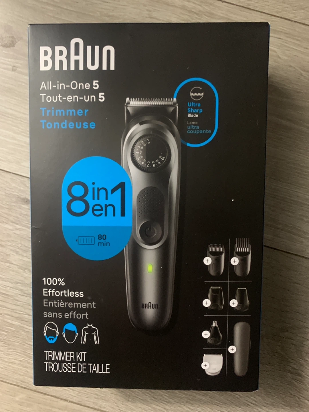 Selling a brand new Braun All-in-One 5 Trimmer Kit! It's still in its original packaging and includes all the attachments and accessories.