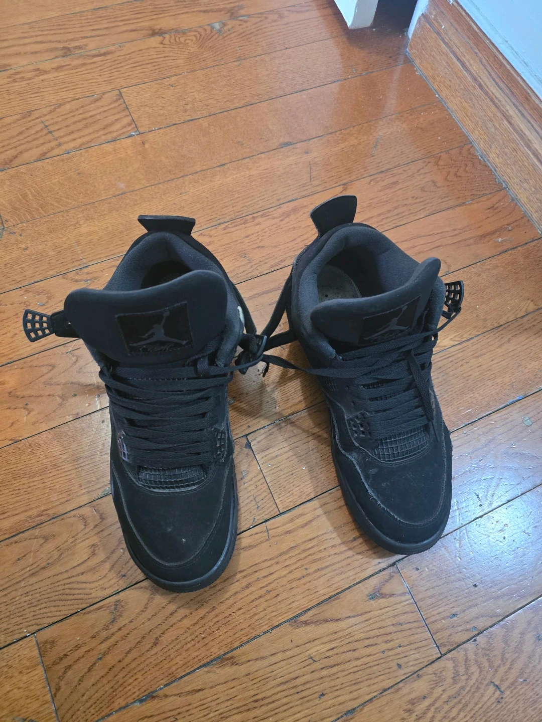 Buy & SellJordan Retro 4 Black Suede SneakersJordan Retro 4 Black Suede Sneakers$80Black suede Jordan Retro 4 sneakers with Jumpman logos on the heels and soles. These are a size 11 in men's.ConditionGoodBrandJordanWHERE TO MEETmississaugaView MapSELLERverifiedRPRockwood Mall15912 reviews1 chats·1 favorites·109 viewsSEND CHAT TO SELLERHi RP! I’m interested in your listing.Hi RP! I’m interested in your listing.Get the Karrot app to chatSign In to chat