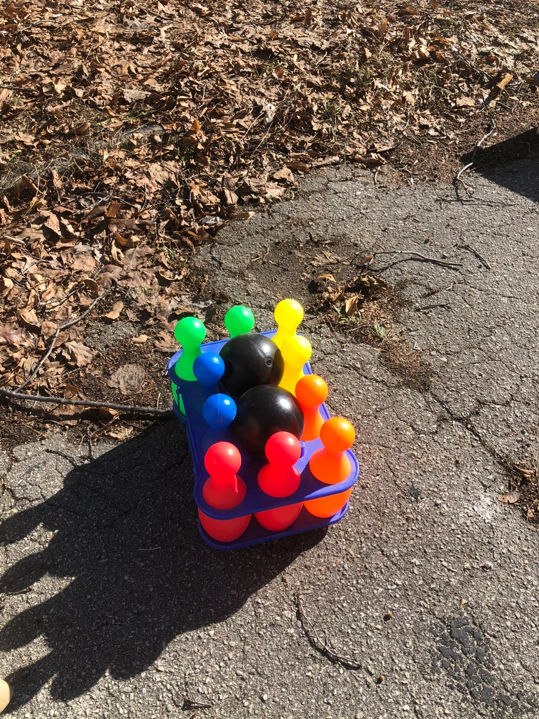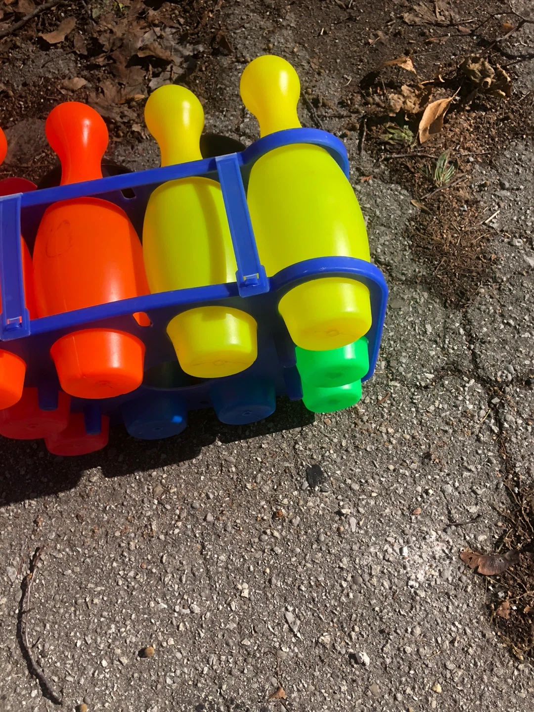 A fun toy bowling set with brightly coloured pins and balls. Perfect for indoor or outdoor play. Made from durable plastic.