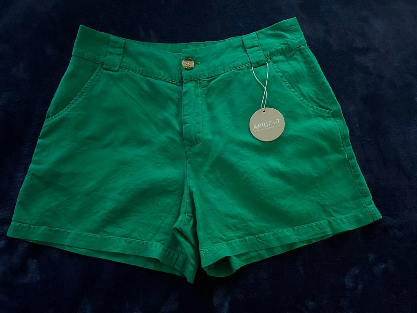 Women's emerald green shorts. Size UK 10, EUR 38, US 6. Flat front. Two pockets at front, two at back. Button and zip fastening. Brand new with tags!