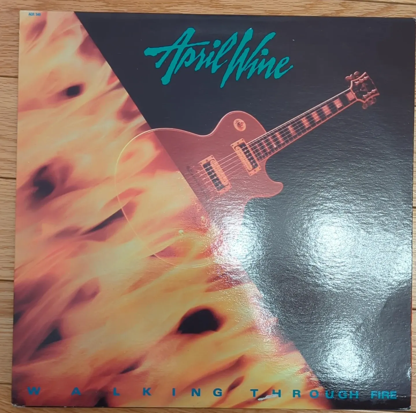 This is the "Walking Through Fire" vinyl record by April Wine. It features tracks like "All It Will Ever Be" and "Wait Any More".