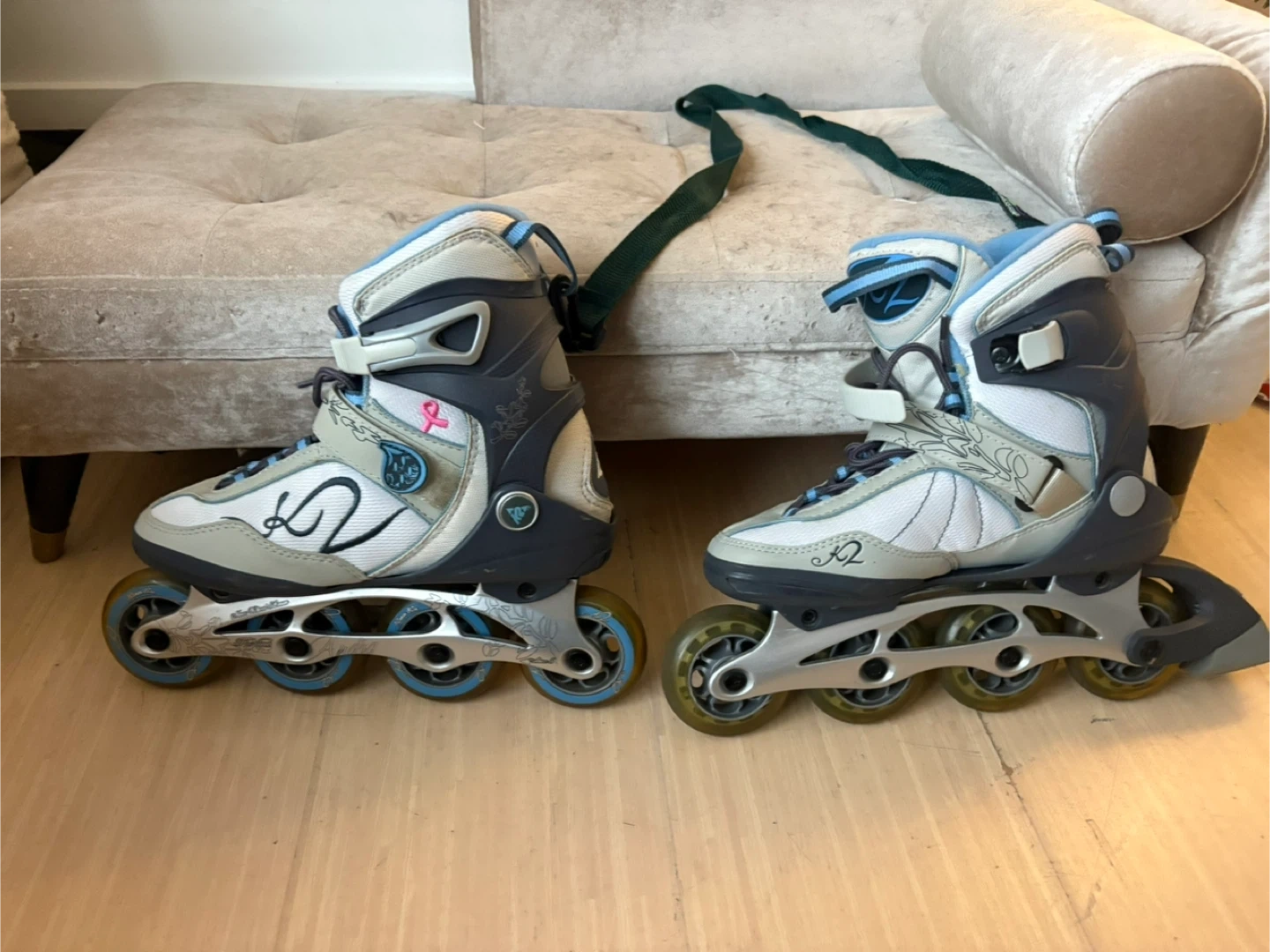 K2 Andfaw inline skates for women. Size US 8 (EUR 39, UK 5.5). They include the original skate manual and an adjustment tool. Great for recreational skating!