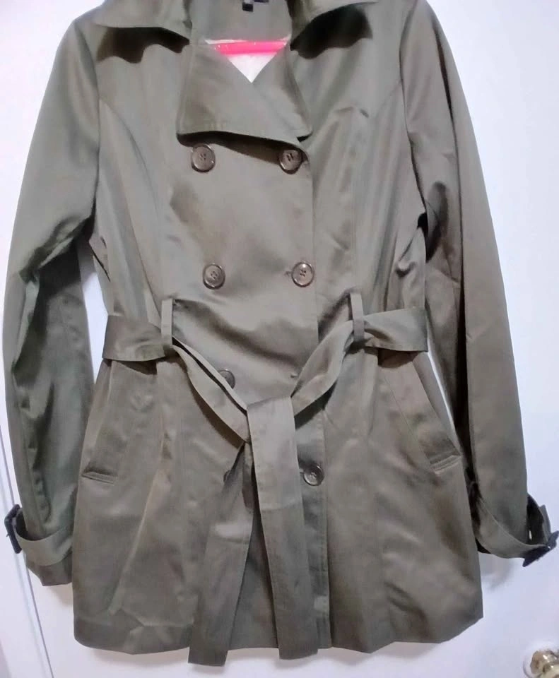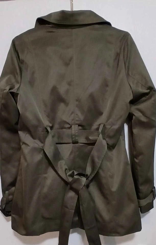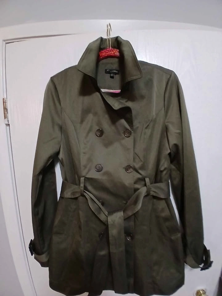 π₯π₯π₯A double-breasted, olive green, with Sherpa lining. The outside of the coat has a satin Lake scene to it, making it perfect for anything from casual to more formal wear.